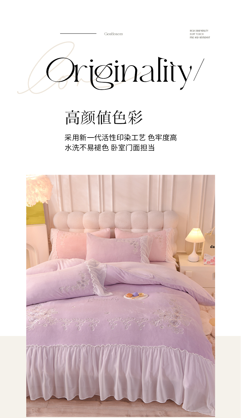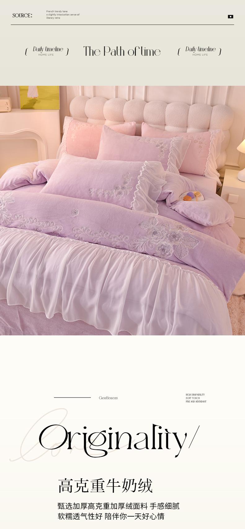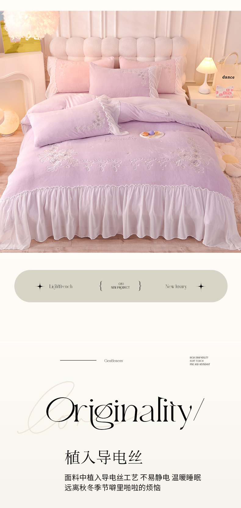 商品名称:迪欧芙 2023新款牛奶绒工艺款四件套-花恋 浅紫