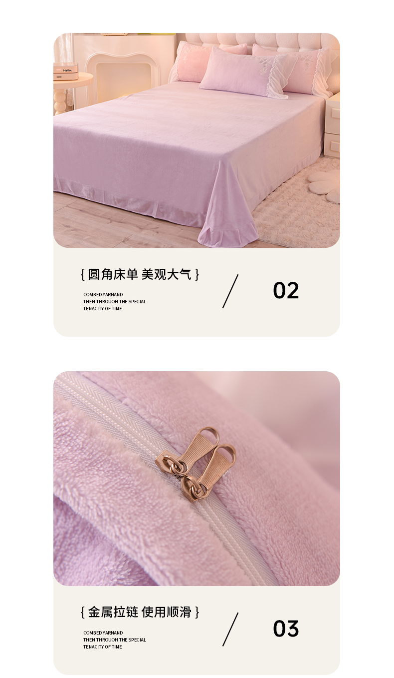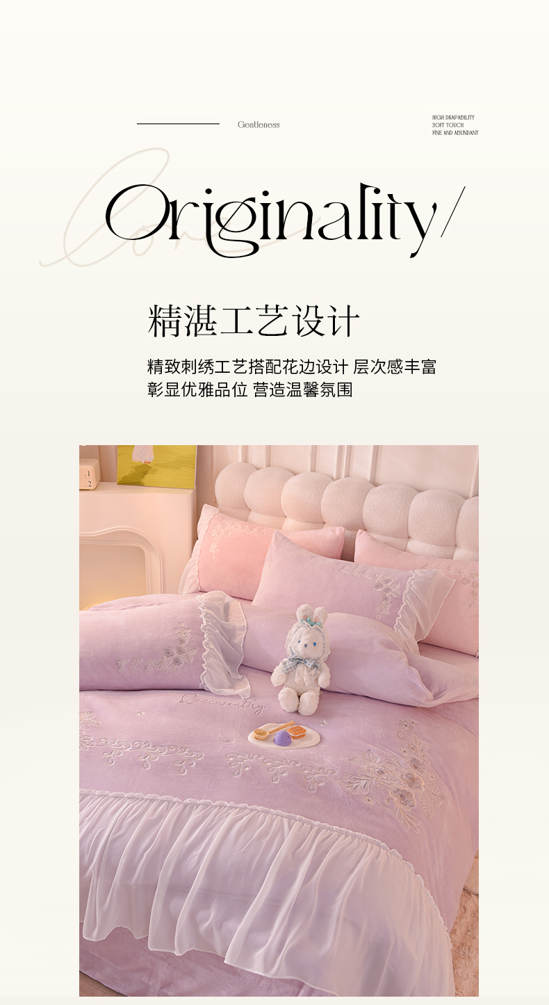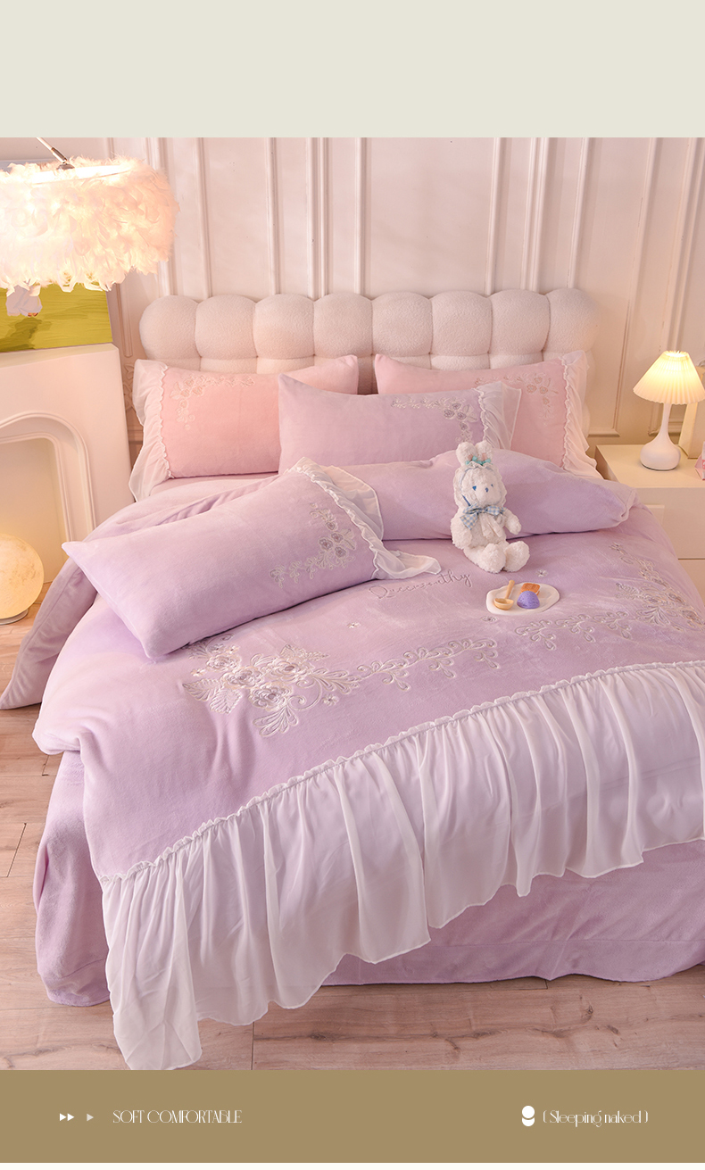 商品名称:迪欧芙 2023新款牛奶绒工艺款四件套-花恋 浅紫