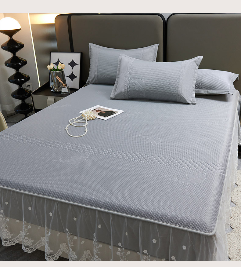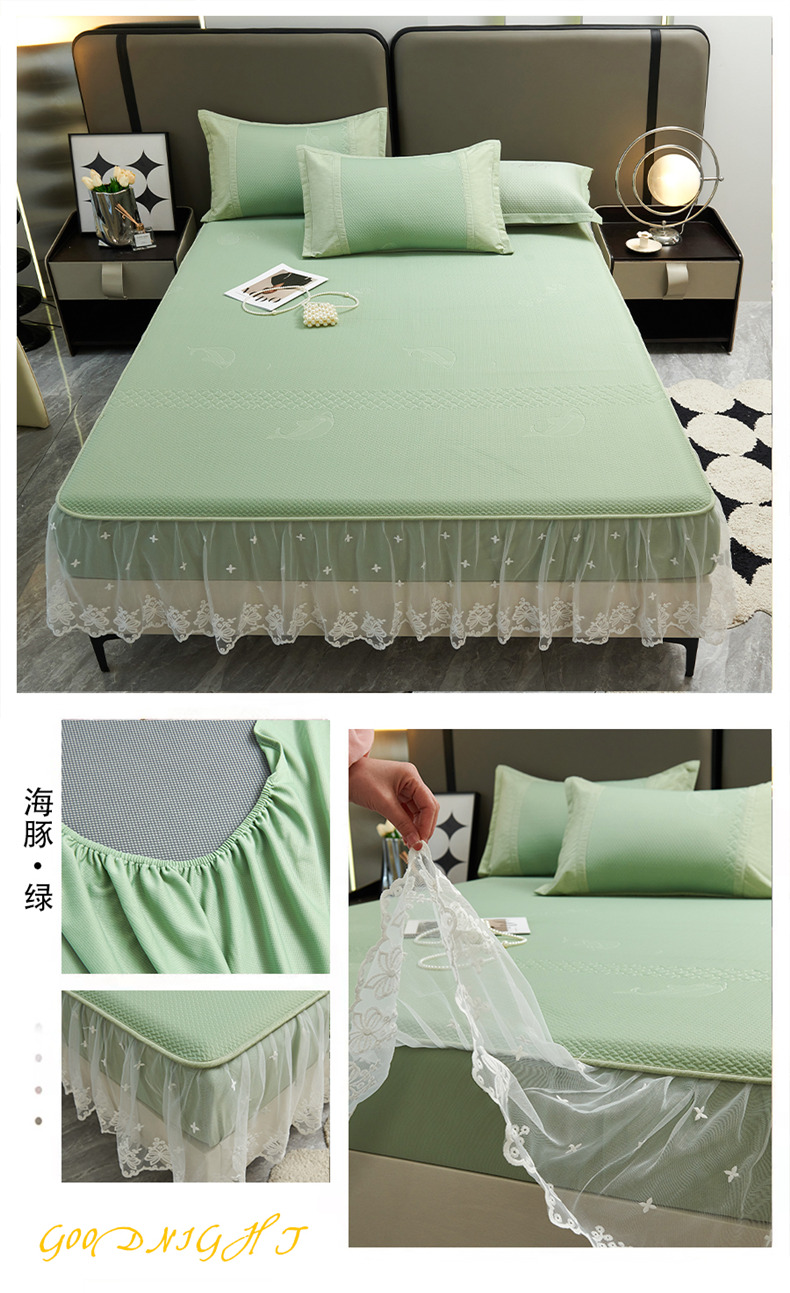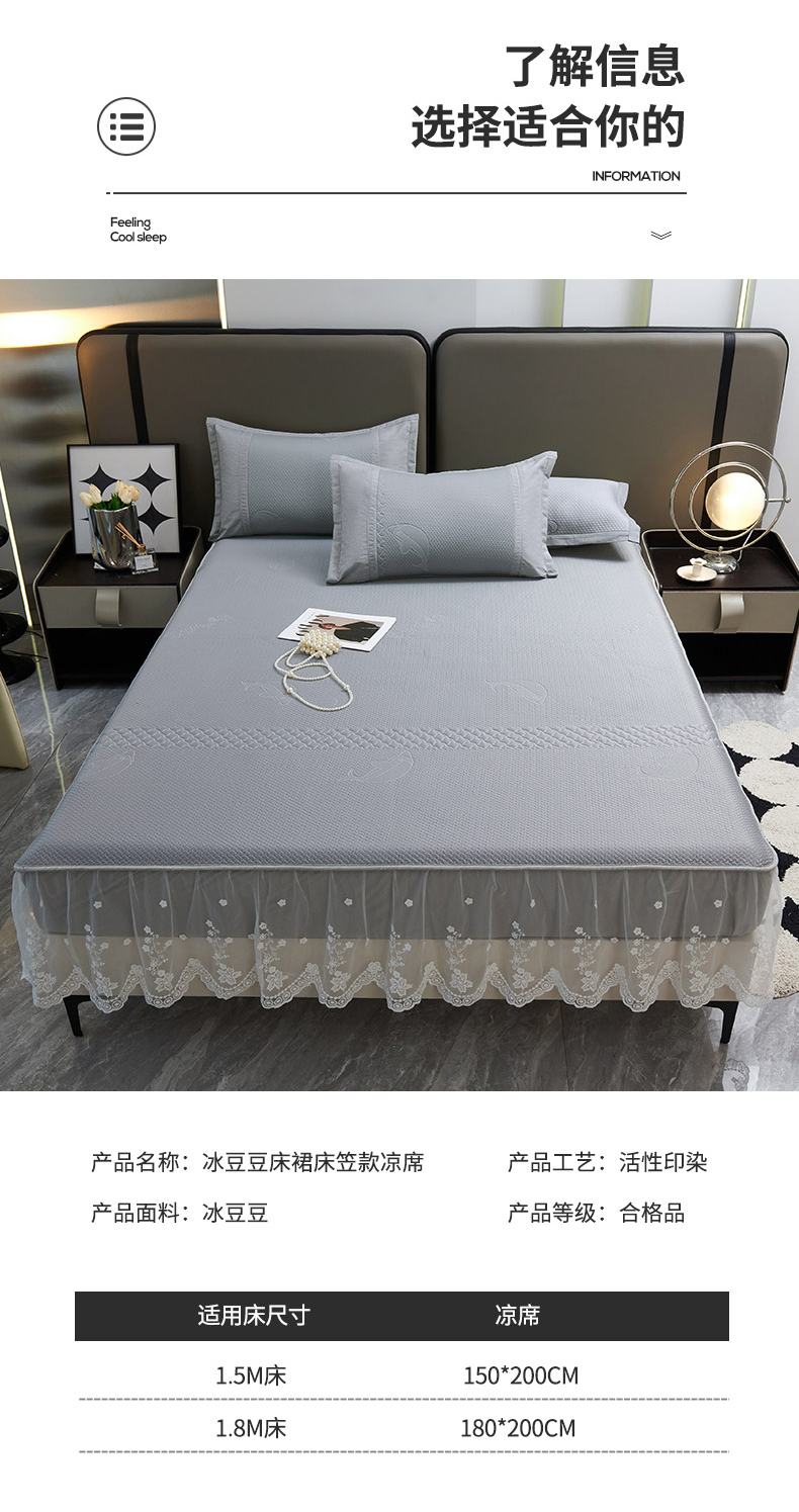 (总)青雅席业 2025新款A类凉感丝蕾丝花边床笠款凉席