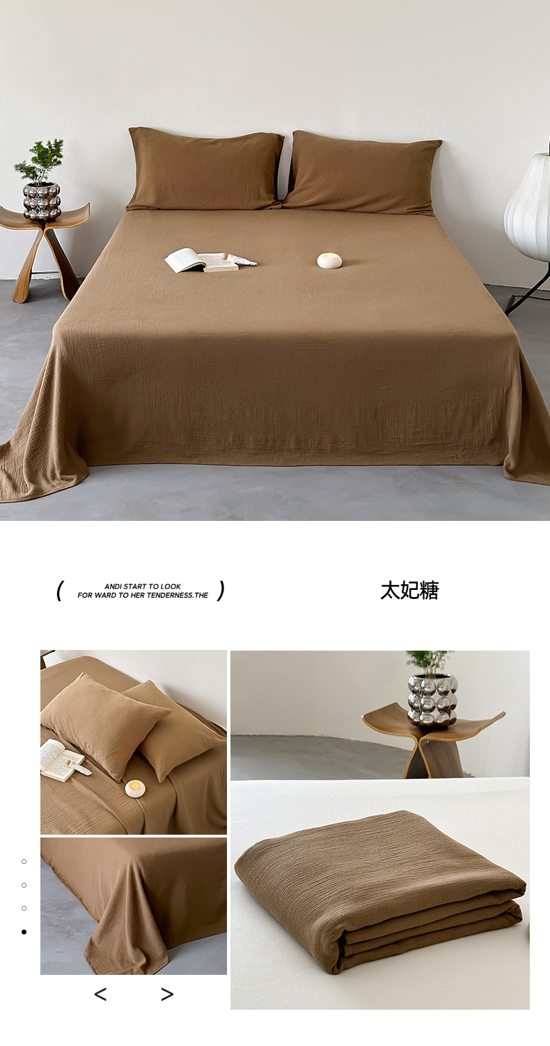商品名称:山舍家居 2024新款纯色全棉双层皱皱纱单品系列--单床单 太妃糖