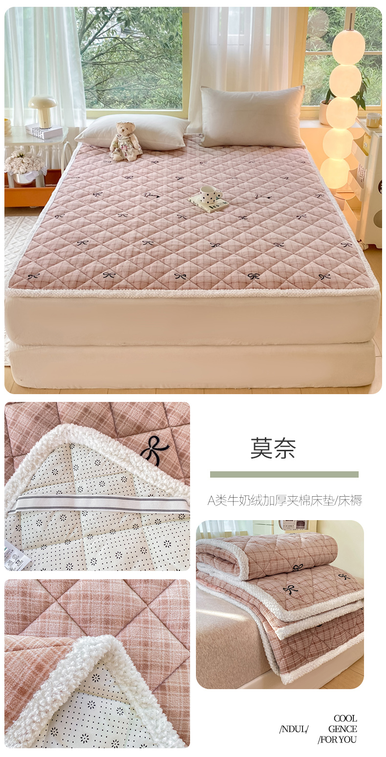 (总)正邦家纺 2025新款加厚全消光牛奶绒床垫夹棉床褥高克重5D雕花牛奶绒单人床上下铺床护垫,苹果绿,青花蓝,沙茶色,月蓝,柔雾灰,桃夭,组合