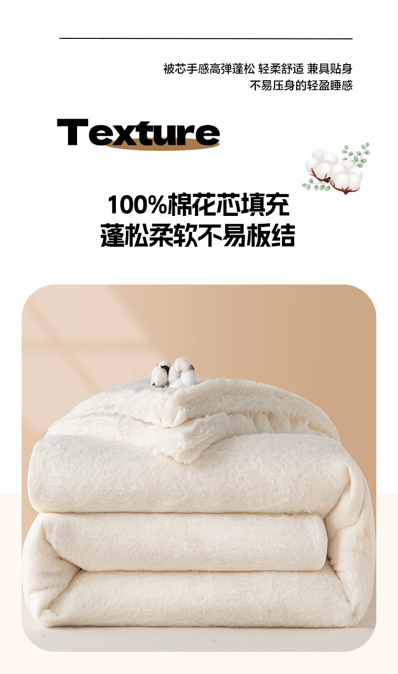 莱登卡奴 25新款全棉A类水洗棉提花100%棉花被春秋被 棉花被-华尚灰