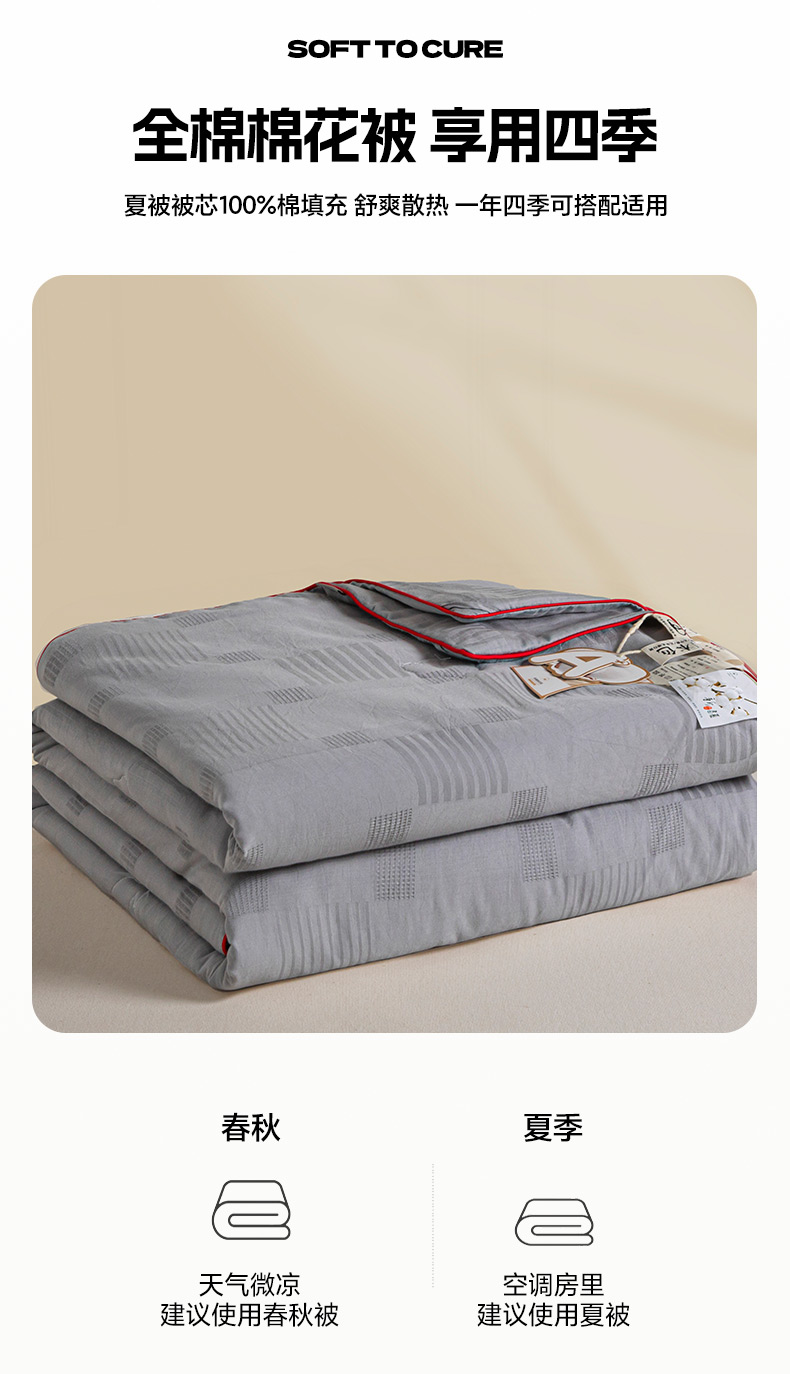 当前位置: 91家纺网 > 商品网购 > 被子 > 夏被 > 莱登卡奴 25新款全棉A类水洗棉提花100%棉花被春秋被 棉花被-华尚灰