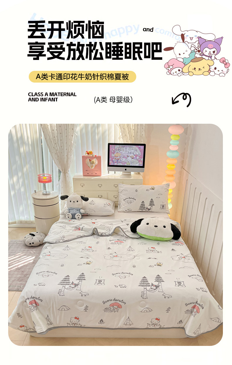 商品名称:暮思家居 2025新款正版授权三丽鸥A类牛奶针织棉夏被子被芯 针织棉-三丽鸥家族