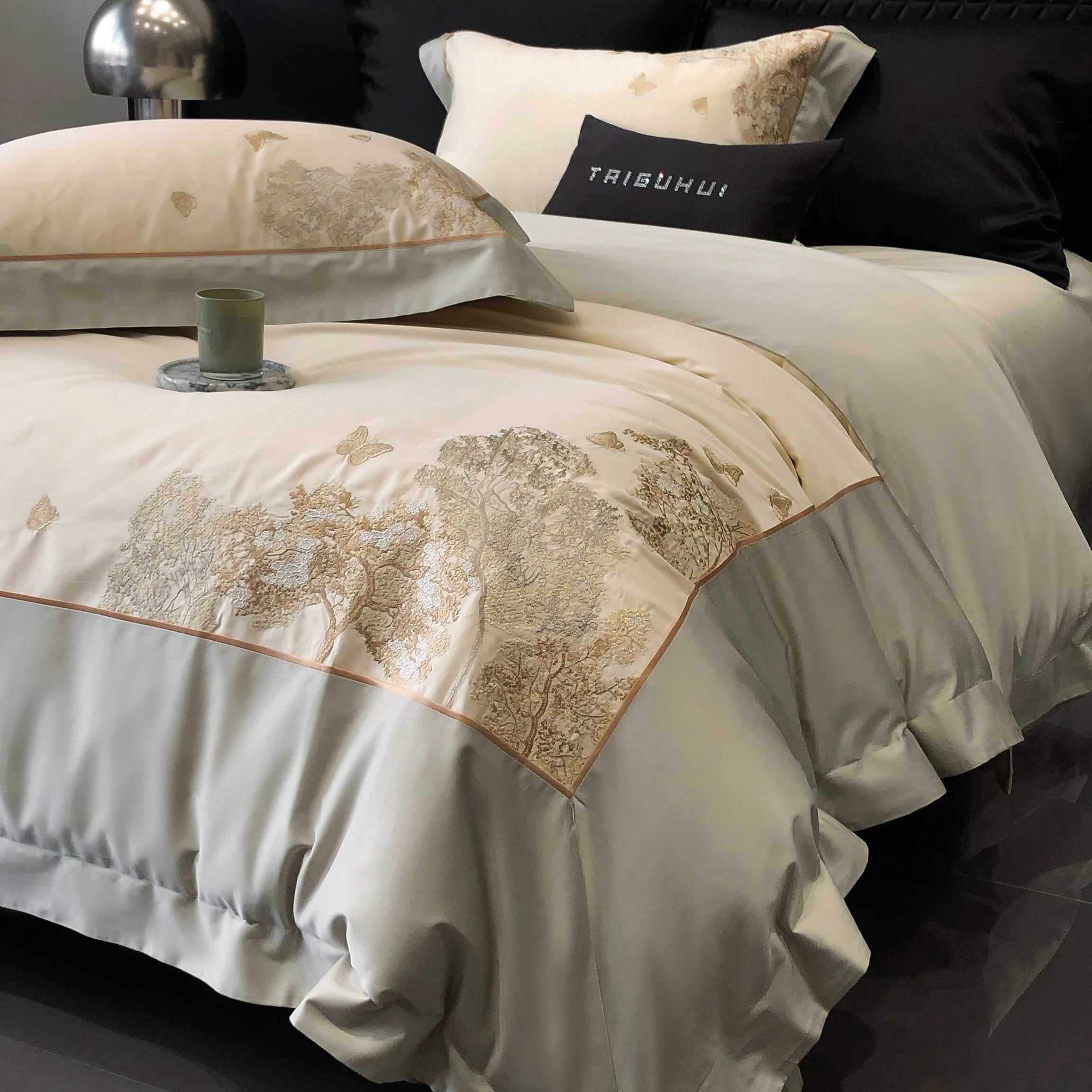 太古汇家居 2025年长绒棉高定绣花四件套-“春日来信”系列 春日来信-琥珀绿