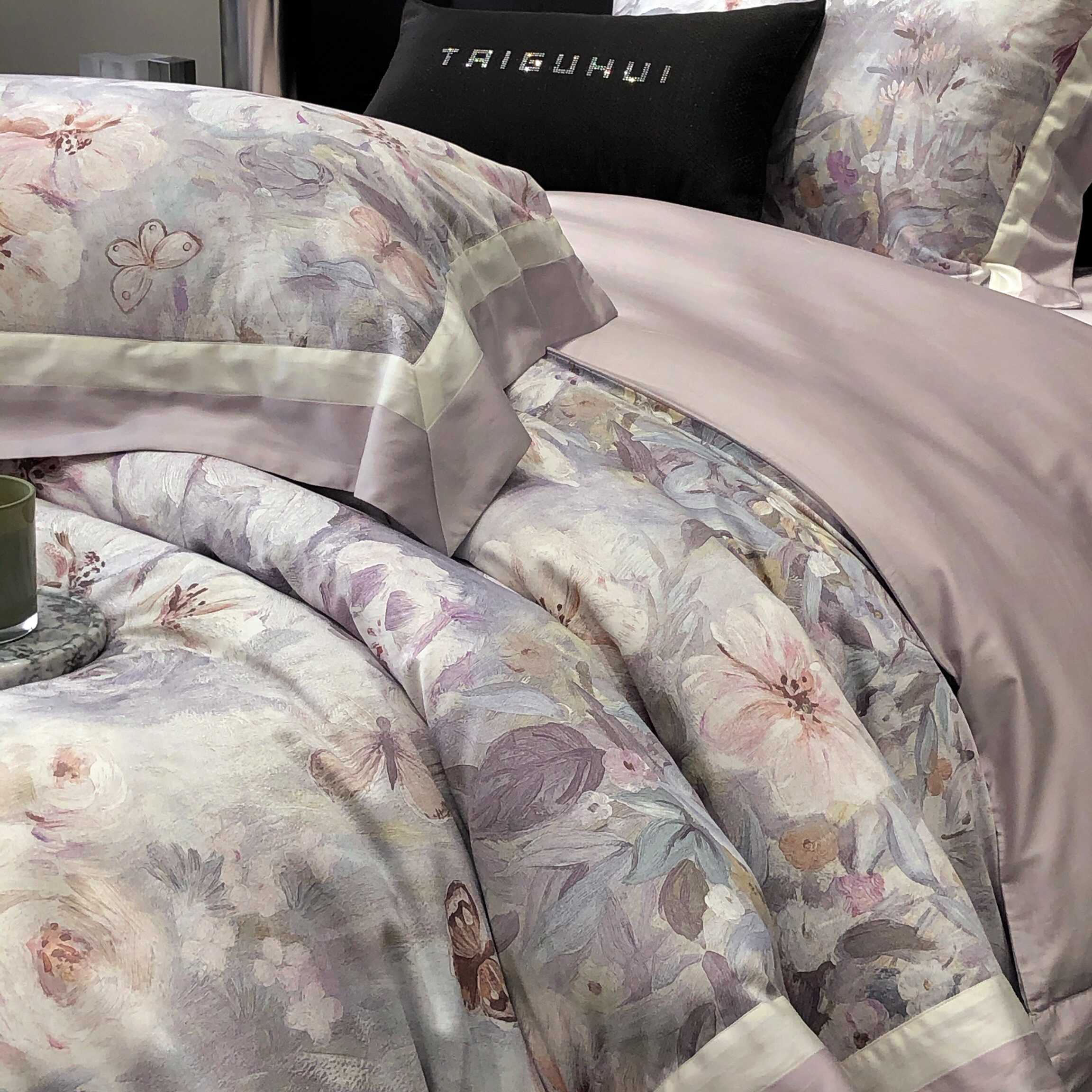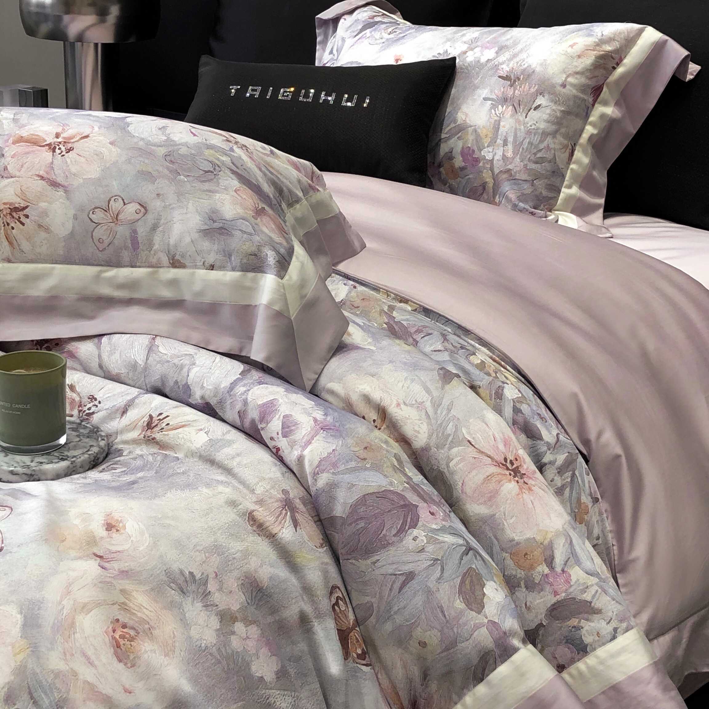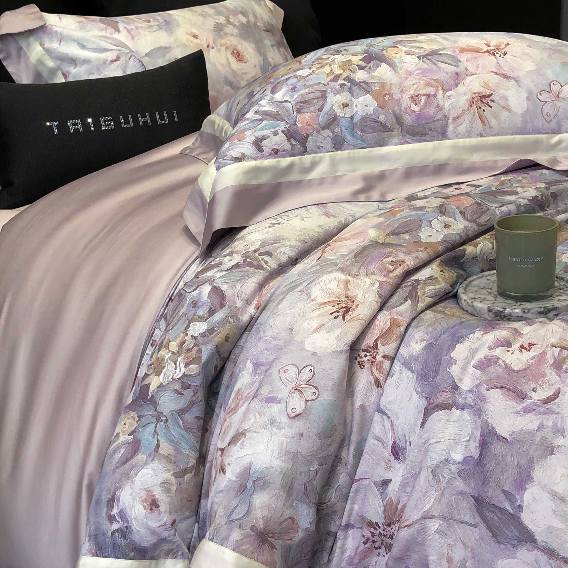 (总)太古汇家居 2025新款活性数码印花四件套,丽奥娜-松石绿,丽奥娜-杏子灰,丽奥娜-樱落紫,莉安娜-粉,莉安娜-卡其,莉安娜-绿,西莉娅-淡紫,西莉娅-粉色