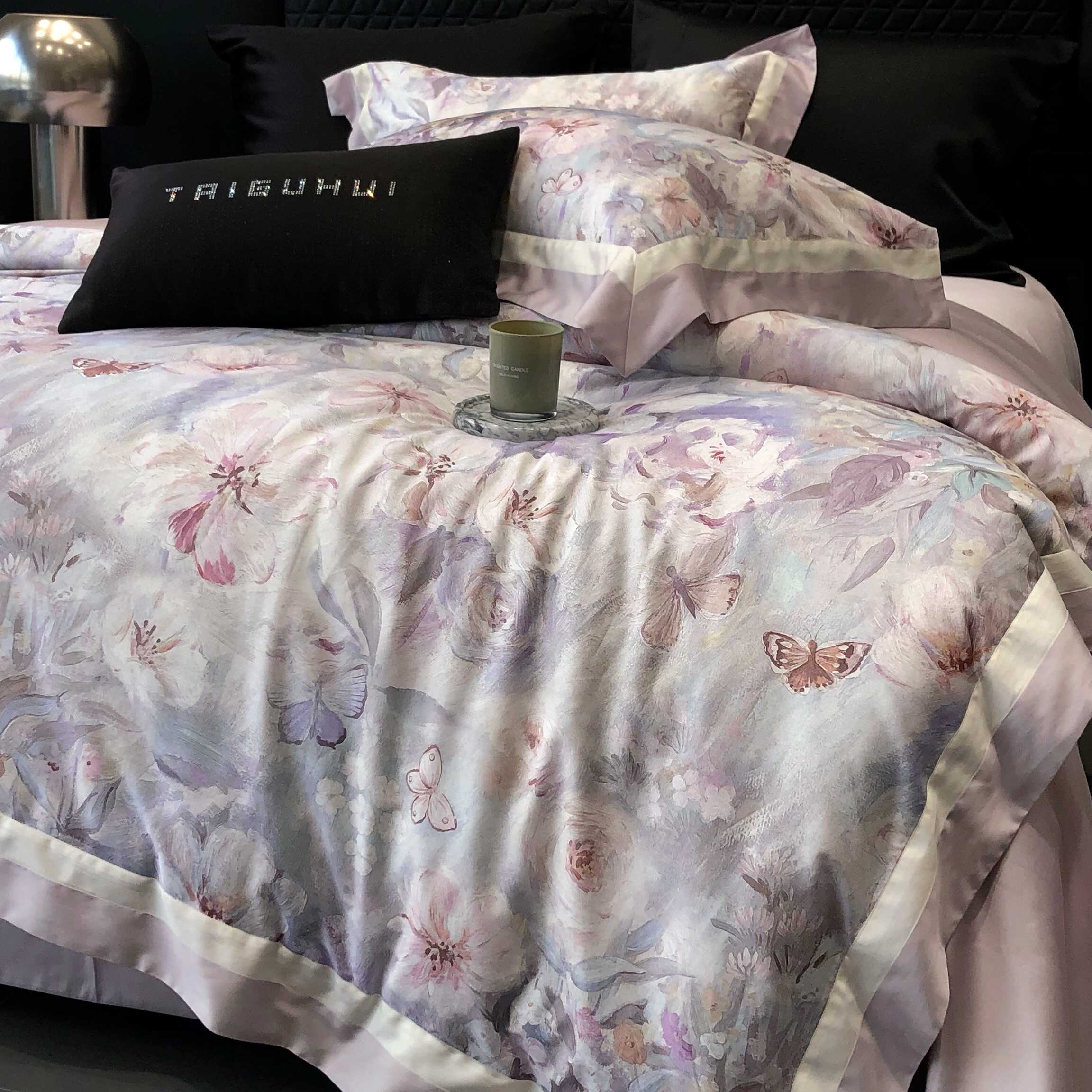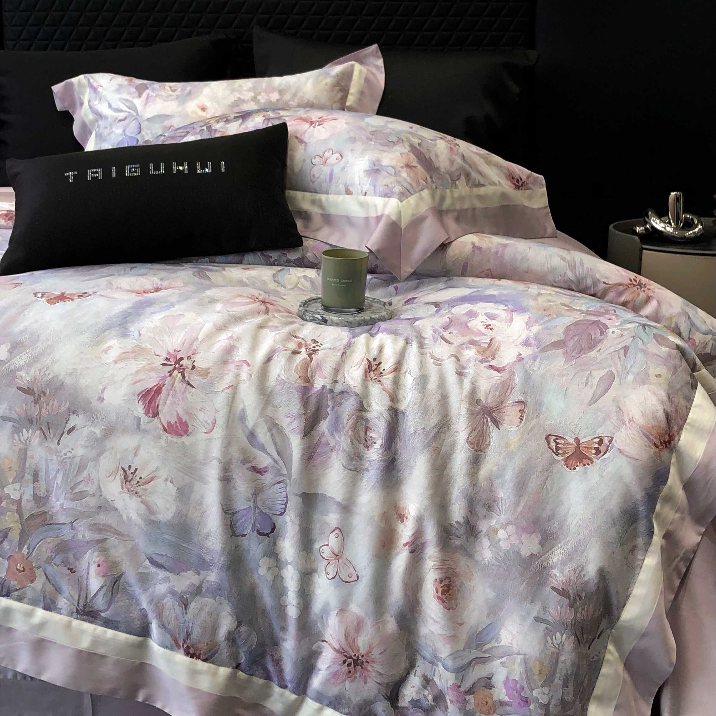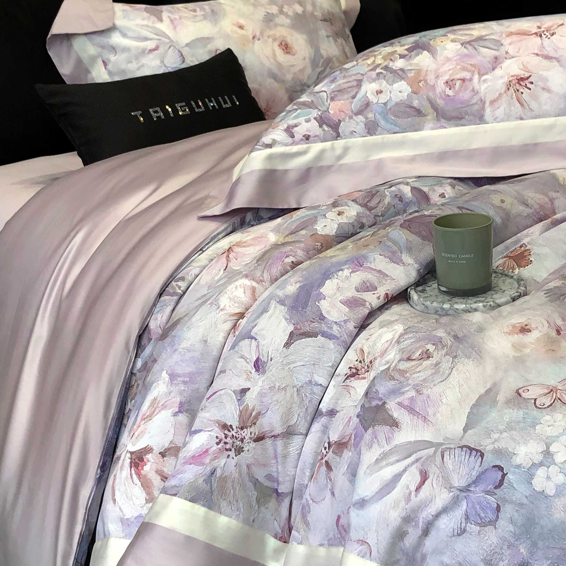商品名称:2025新款高支高密长绒棉专版数码印花双拼系列四件套-卡梅伦【券后不低于378】 科瑞拉-丁香紫