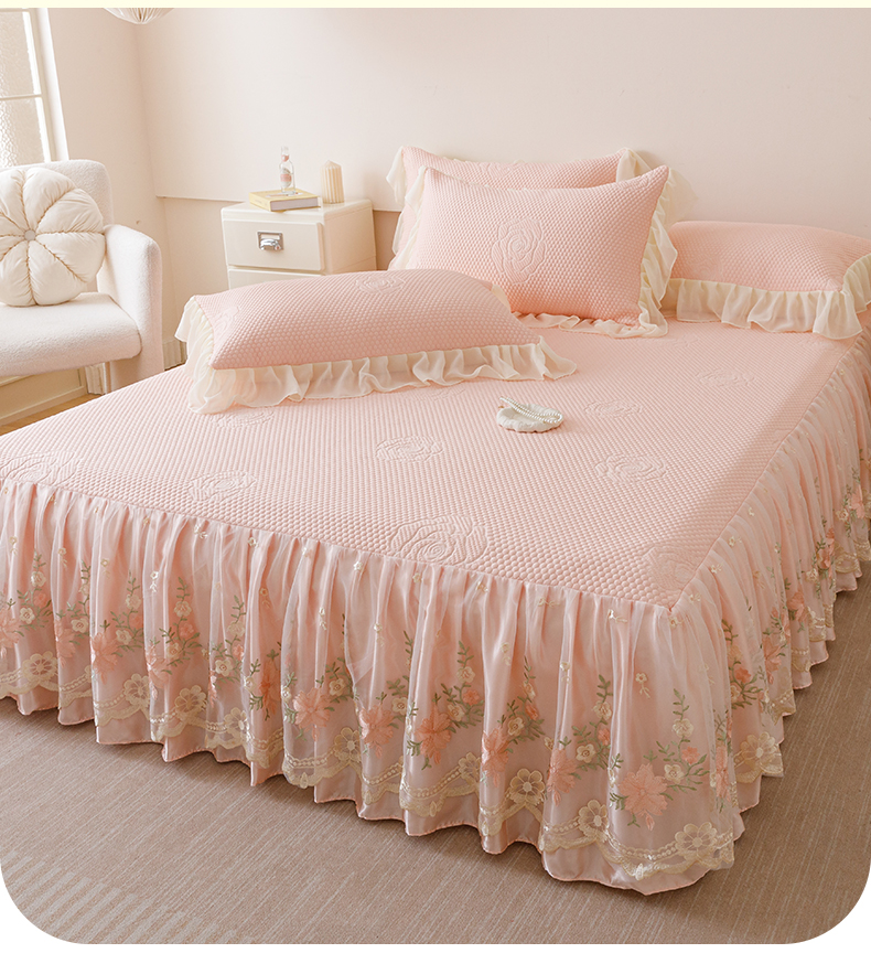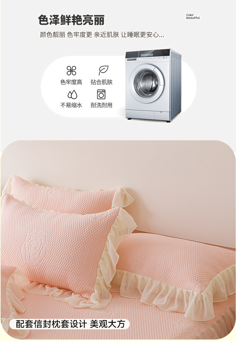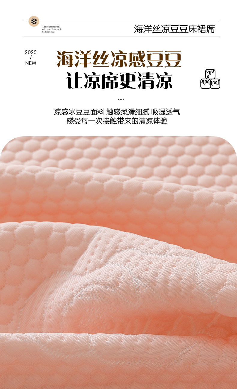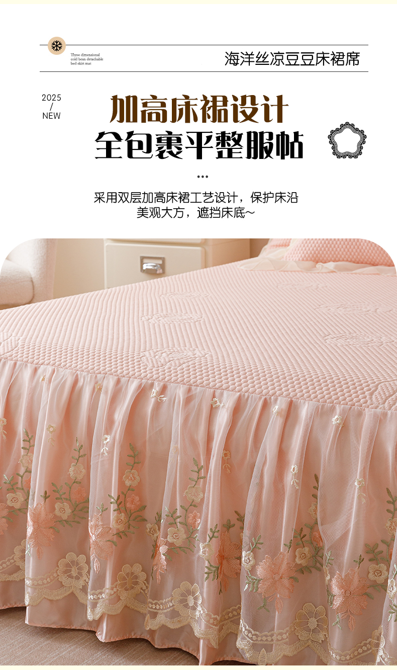 当前位置: 91家纺网 > 商品网购 > 床品套件 > 三件套 > 好儿喜家纺 2025新款A类海洋丝凉感豆豆席席子凉席床裙三件套--花香系列 花香-橄榄绿