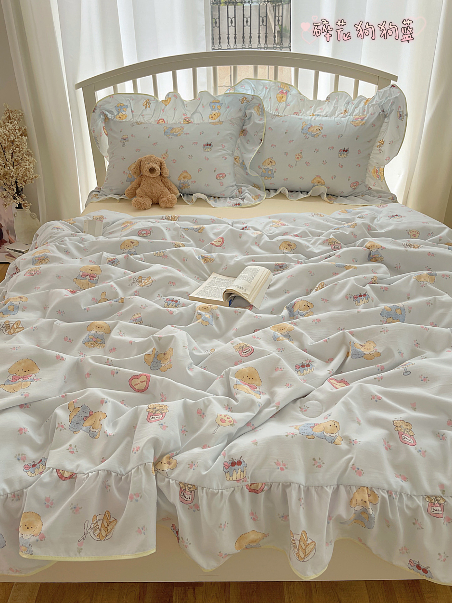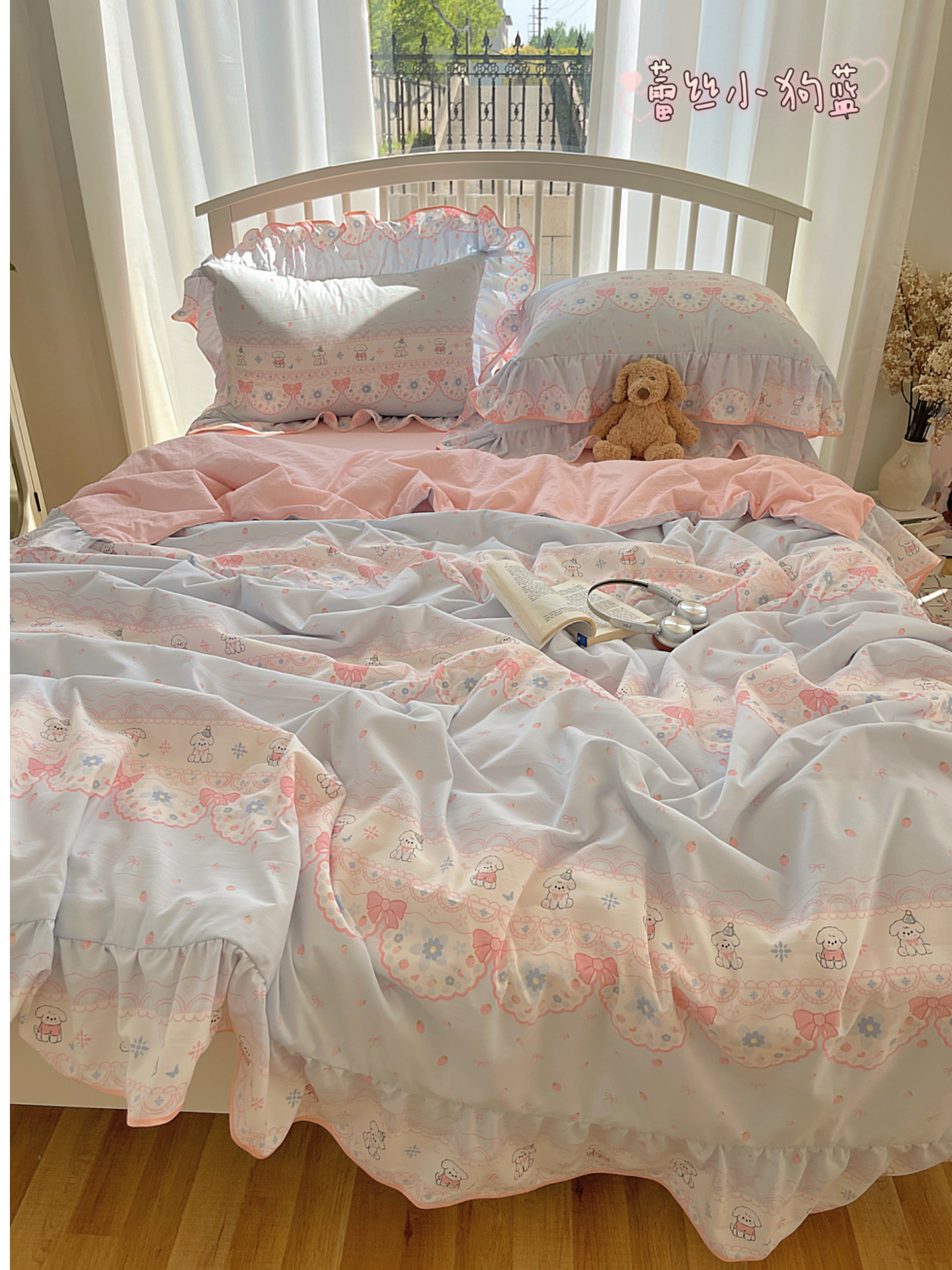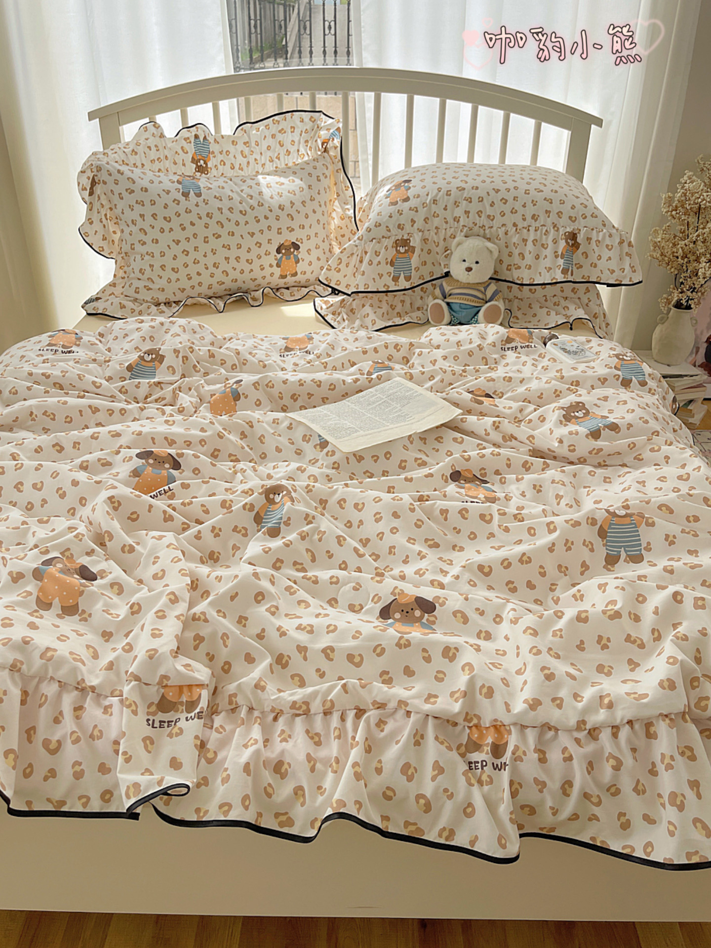 (总)顾里家纺 2026新款春日碎花大花边云感棉四件套(床笠属于定制 后期不予退换),豹纹樱桃,彩点小熊,丁香小熊,风铃西高地,复古风信,复古山茶,花海,蓝豹小猫,梦幻粉兔,玩偶粉兔,线条表情狗,星辰花,樱桃花,虞美人,治愈小狮