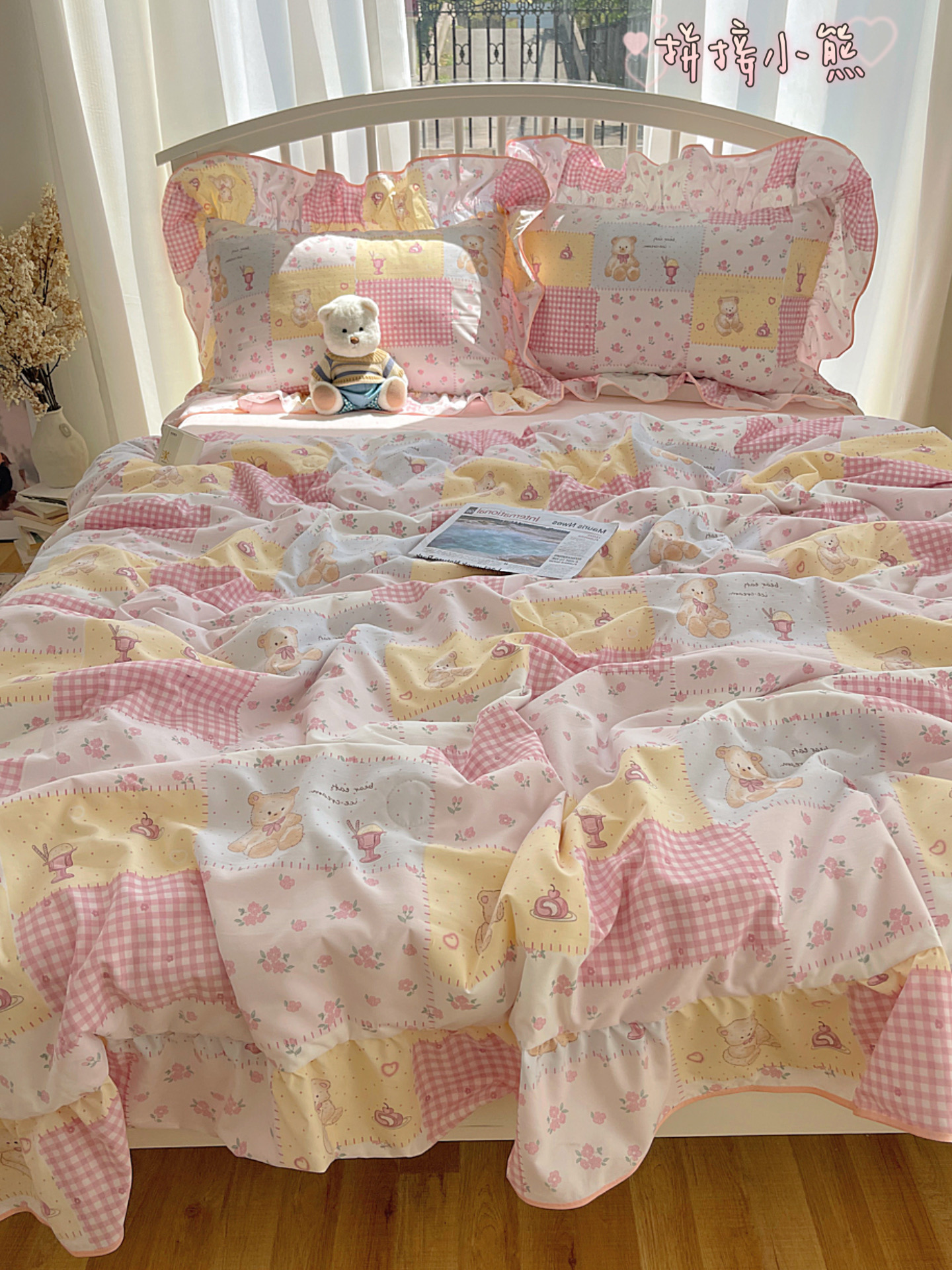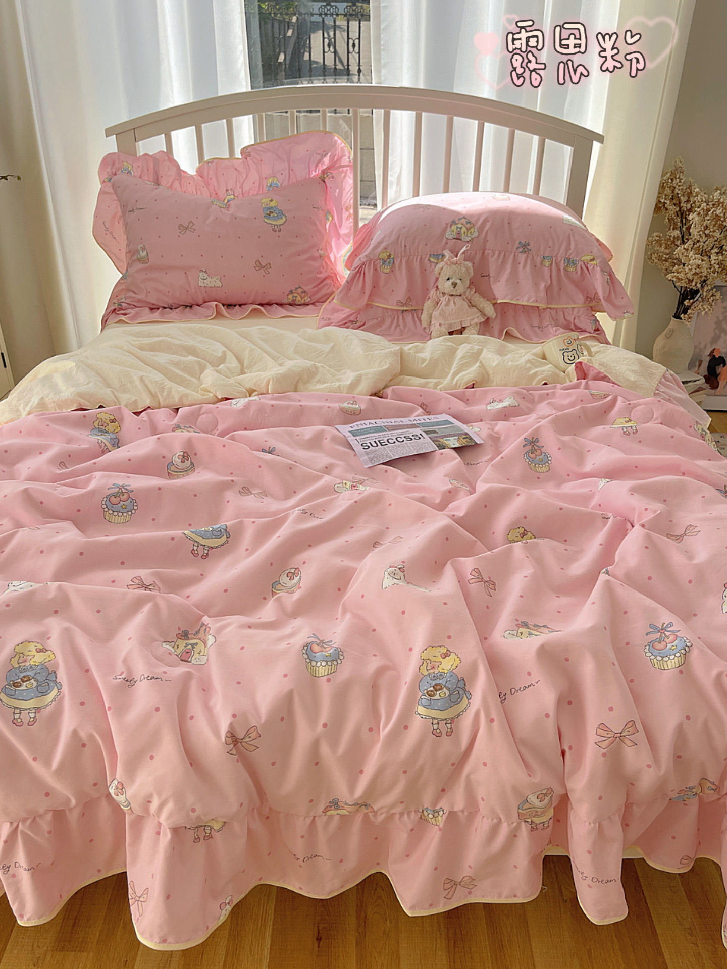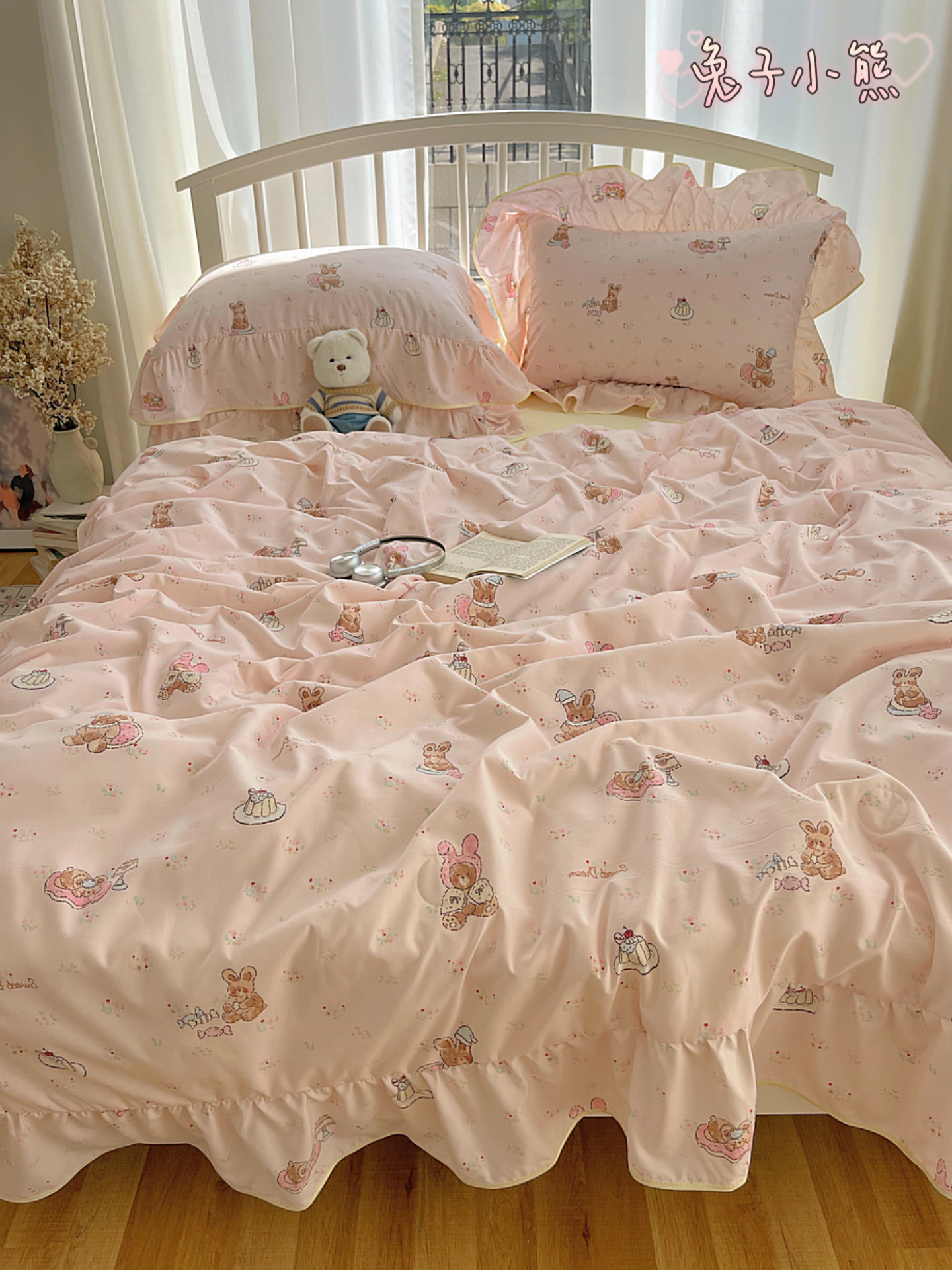 (总)顾里家纺 2026新款春日碎花大花边云感棉四件套(床笠属于定制 后期不予退换),豹纹樱桃,彩点小熊,丁香小熊,风铃西高地,复古风信,复古山茶,花海,蓝豹小猫,梦幻粉兔,玩偶粉兔,线条表情狗,星辰花,樱桃花,虞美人,治愈小狮
