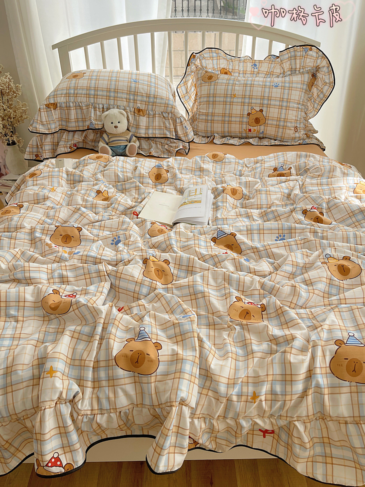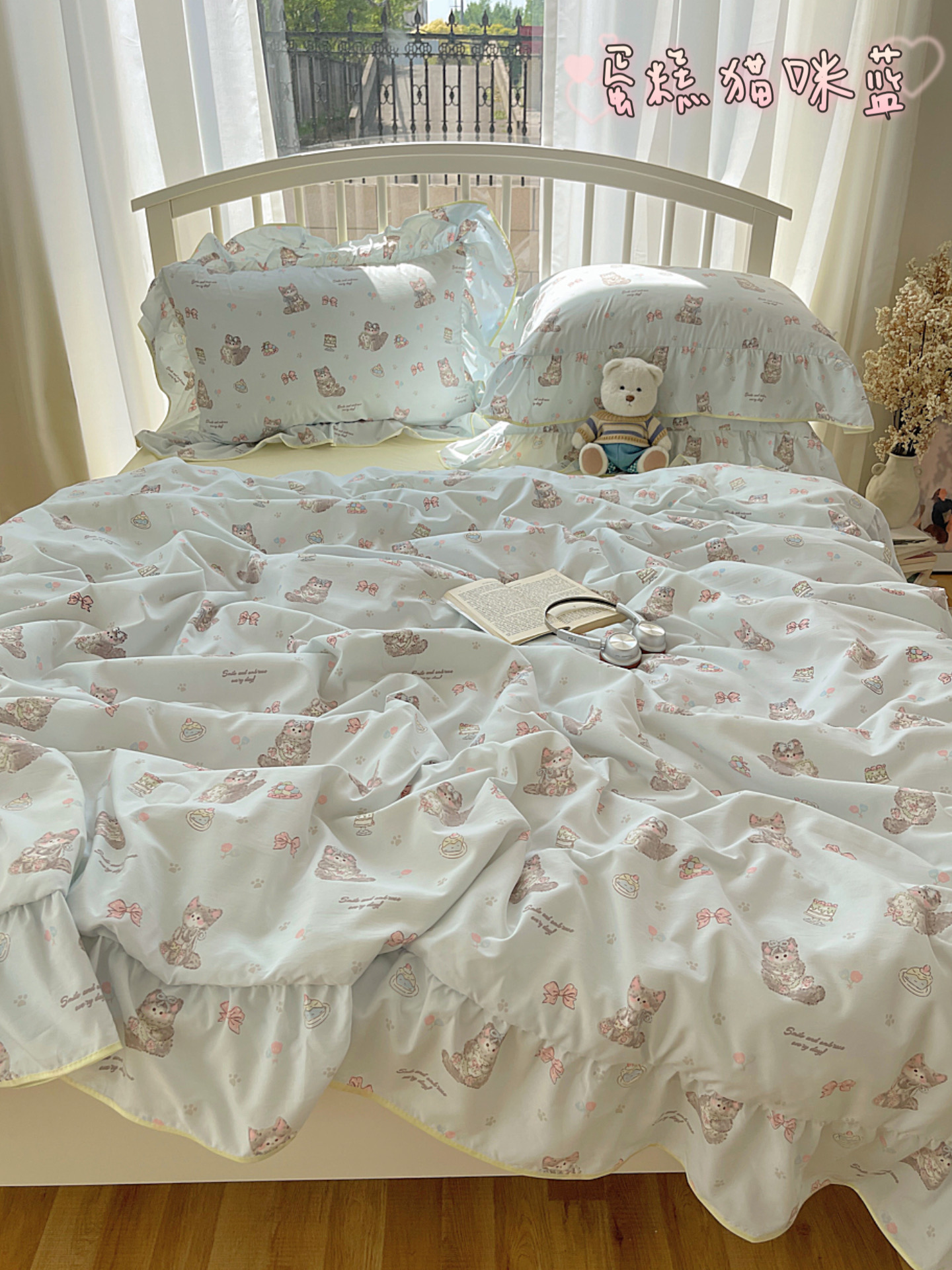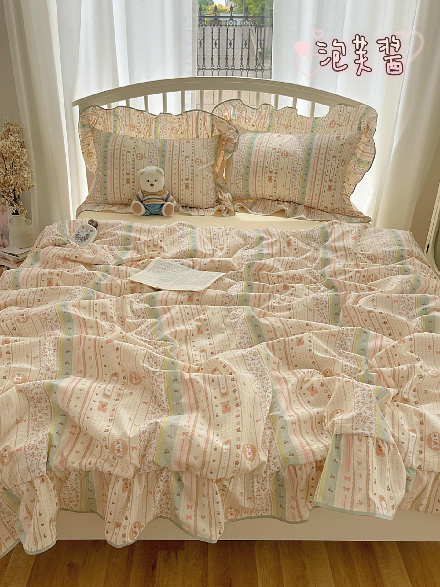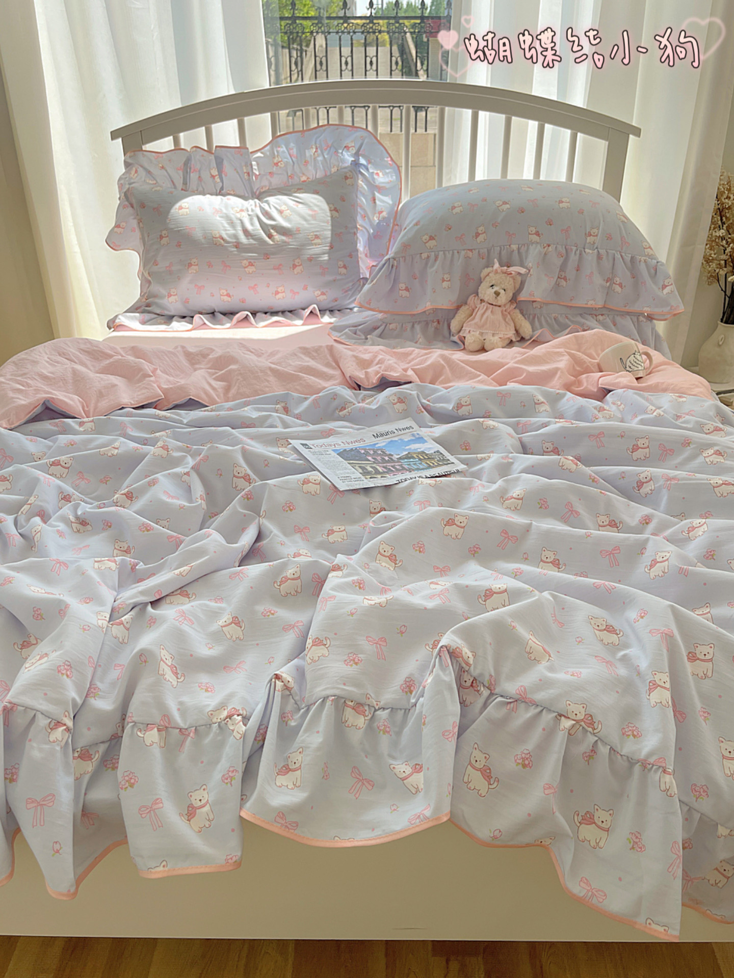 (总)顾里家纺 2026春夏新款ins韩风印花贝壳针双层纱四件套,啵啵蝴蝶结,啵啵猫咪,彩色啵啵,粉米兔,浆果梦,蓝条爱心,曲奇小熊,碎花兔熊,雾屿动物,小南瓜,星月童话,雪瑞纳仔,樱桃蝴蝶结,芋泥腊肠狗,栀夏小兔,治愈动物,治愈星星