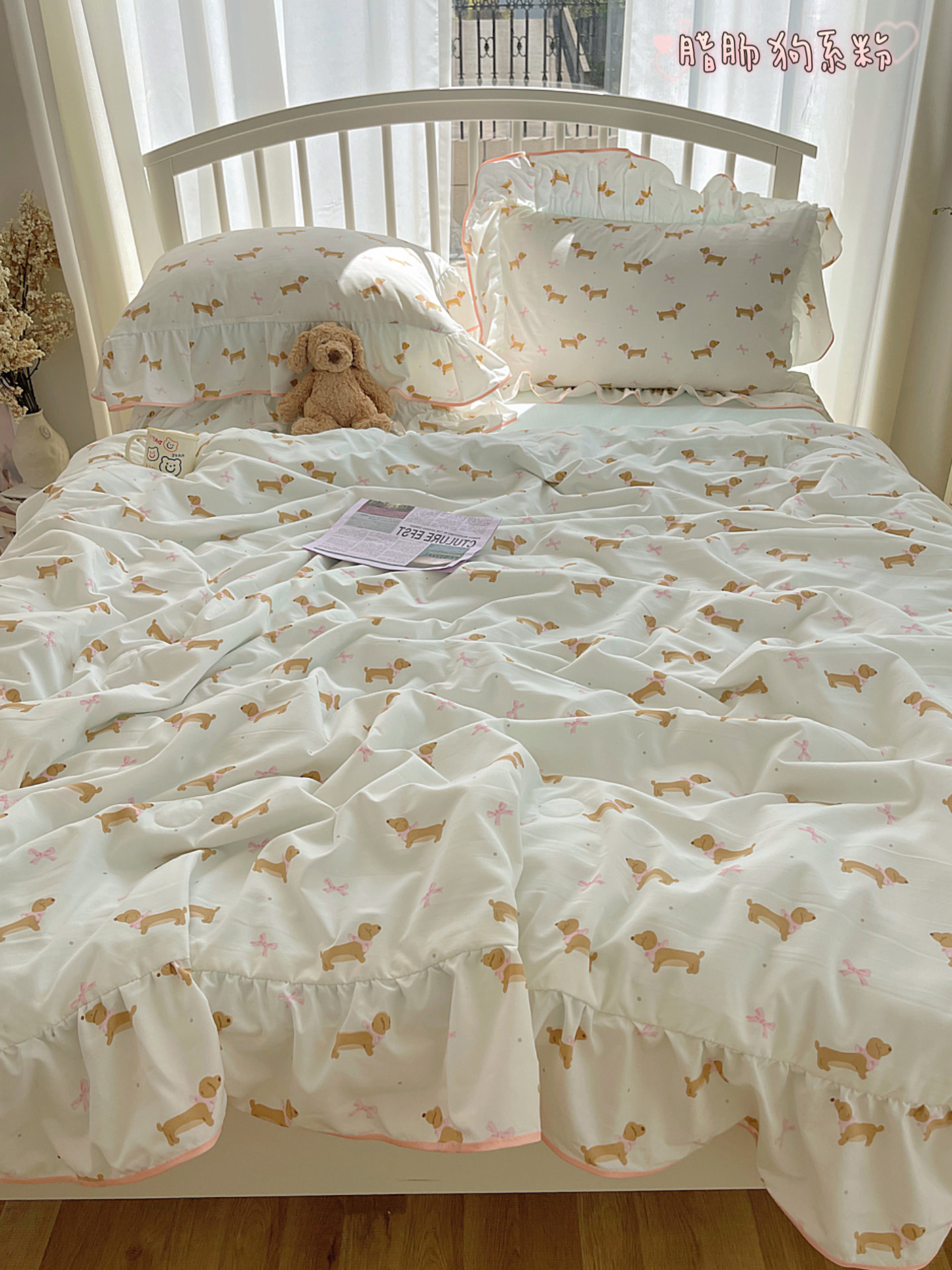 (总)顾里家纺 2024新款韩系腊肠狗毛巾绣牛奶绒四件套,粉格腊肠狗,黄格腊肠狗,咖格腊肠狗,蓝格腊肠狗,绿格腊肠狗
