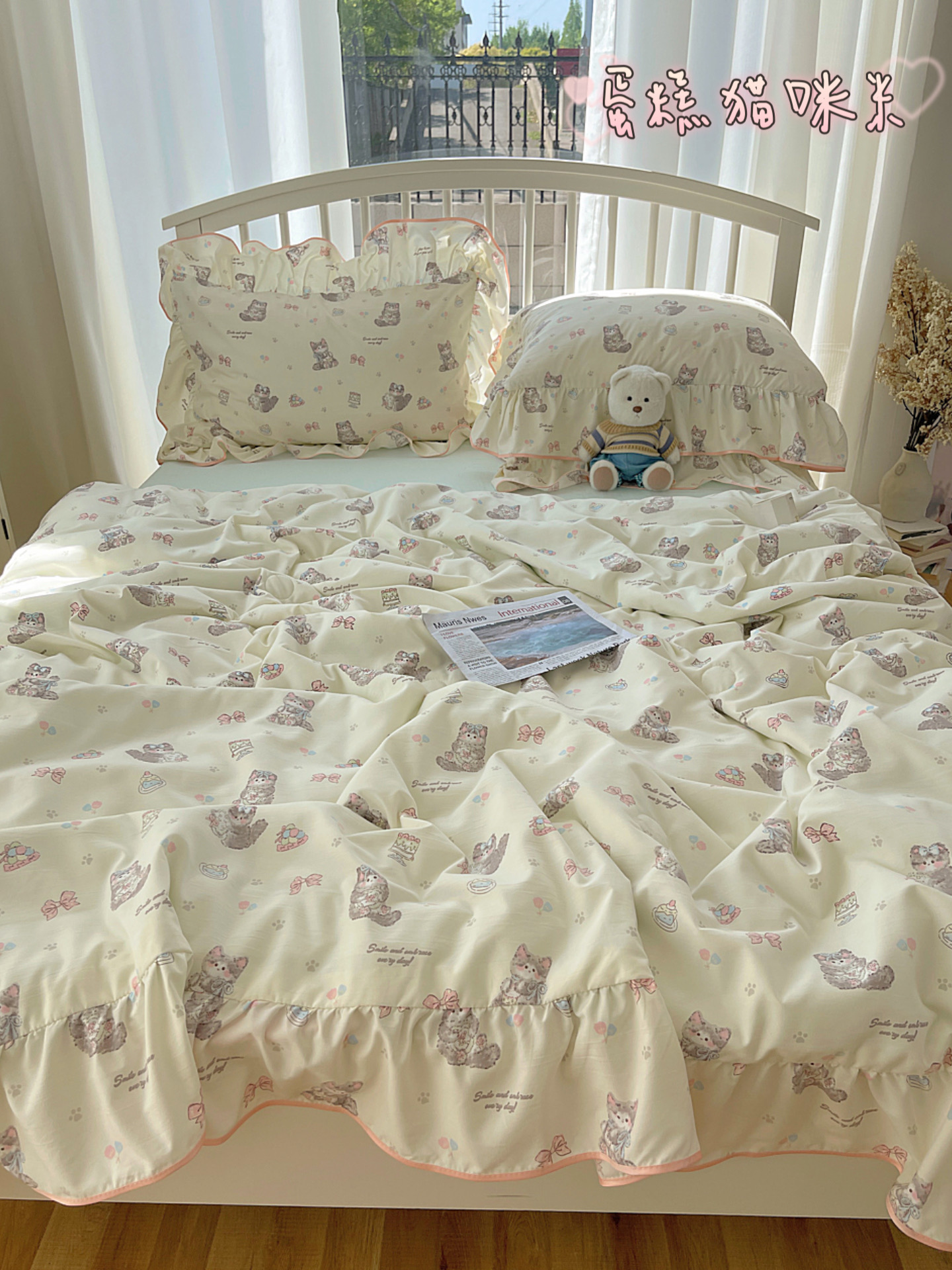 (总)顾里家纺 2025新款兔毛蝴蝶结喵酱牛奶绒四件套,蝴蝶结猫咪白,蝴蝶结猫咪粉,蝴蝶结猫咪黄,蝴蝶结猫咪咖,蝴蝶结猫咪蓝