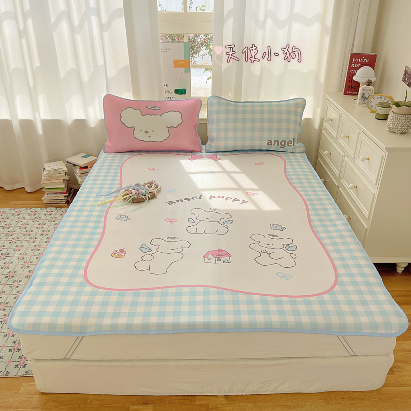 顾里家纺 2025新款韩式Chic风冰感牛奶丝软席席子 会员➖5元 蓝格黑猫