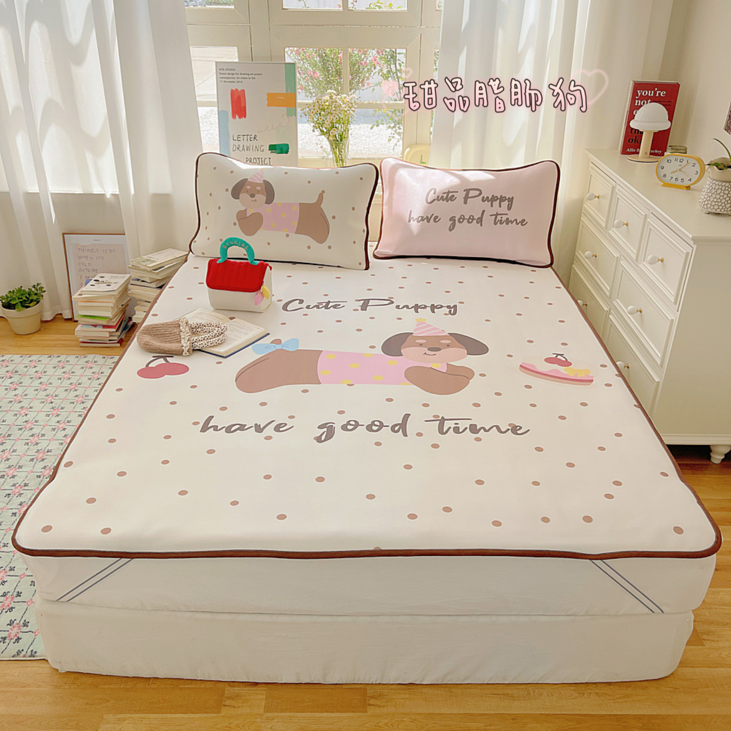 (总)顾里家纺 2024新款韩系腊肠狗毛巾绣牛奶绒四件套,粉格腊肠狗,黄格腊肠狗,咖格腊肠狗,蓝格腊肠狗,绿格腊肠狗