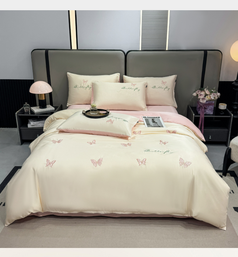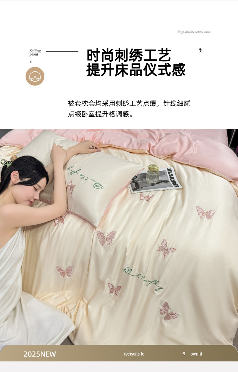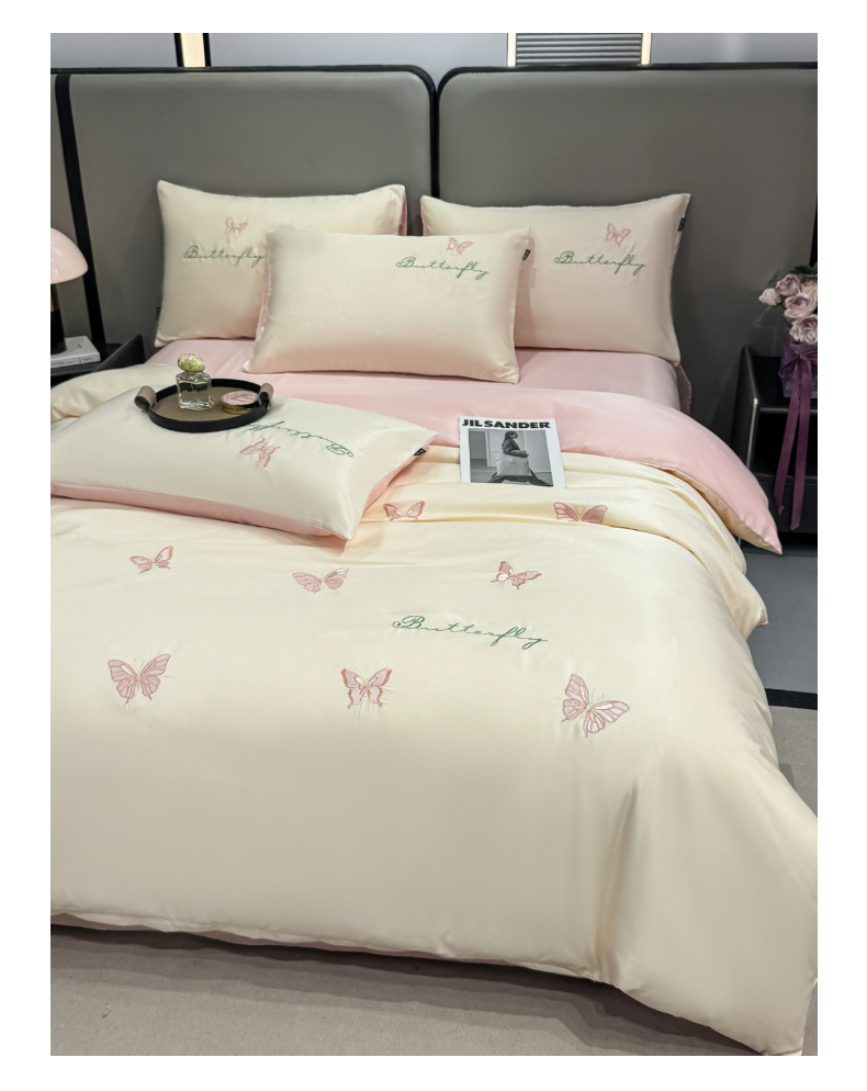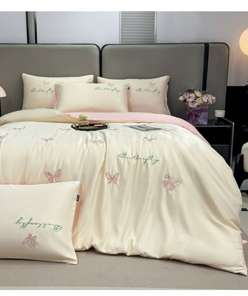 当前位置: 91家纺网 > 商品网购 > 床品套件 > 四件套 > 水洗真丝四件套 > 乐沐家纺 2025春夏新款水洗真丝绣花冰丝四件套 蝴蝶-清香绿