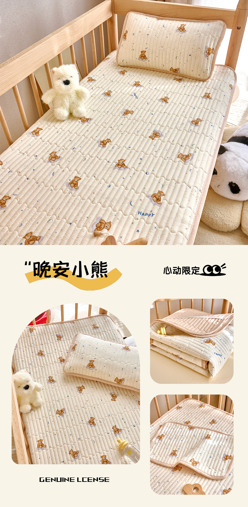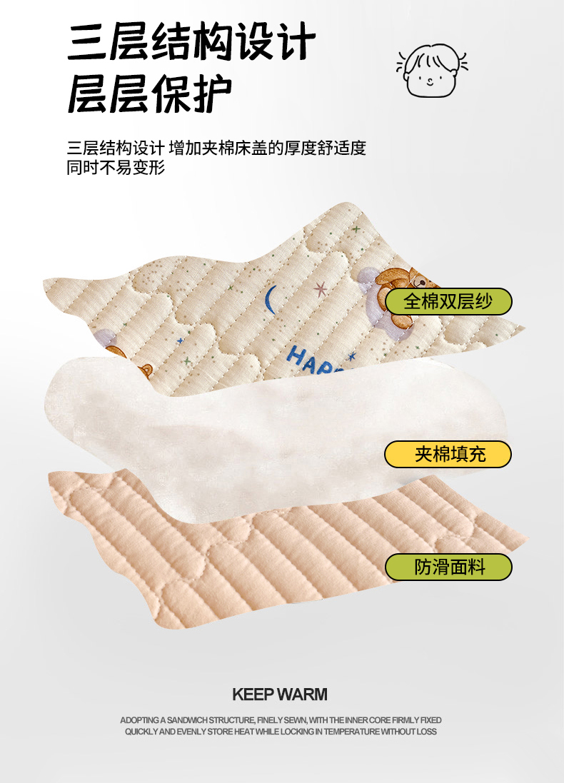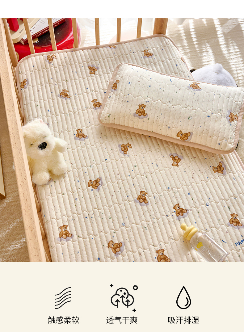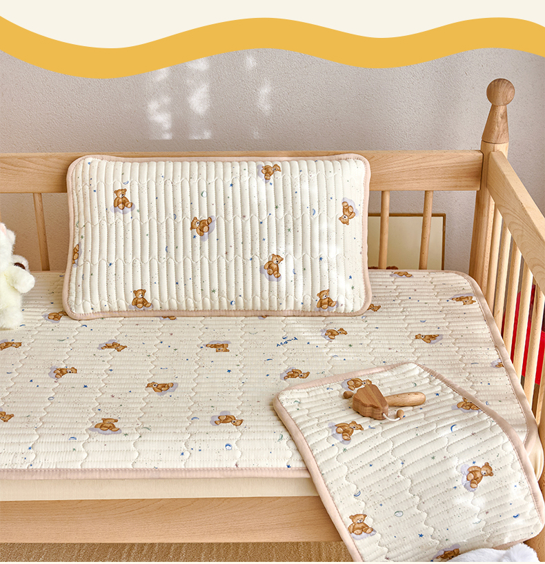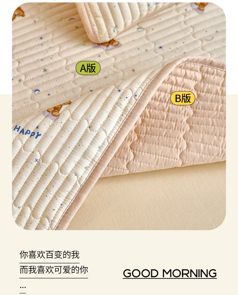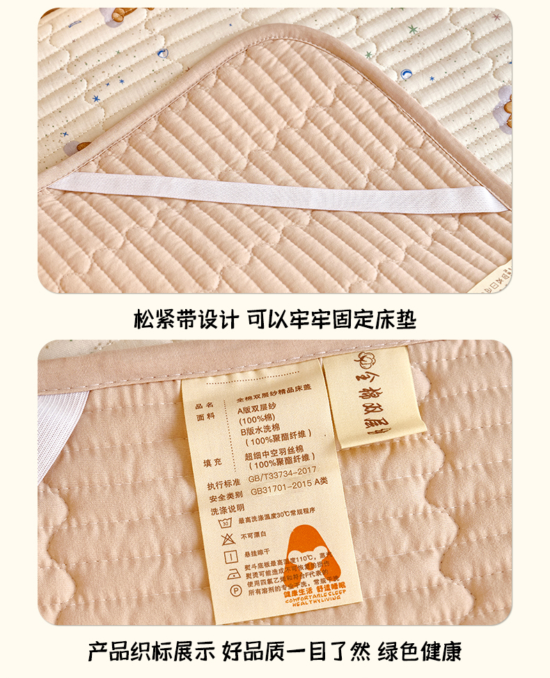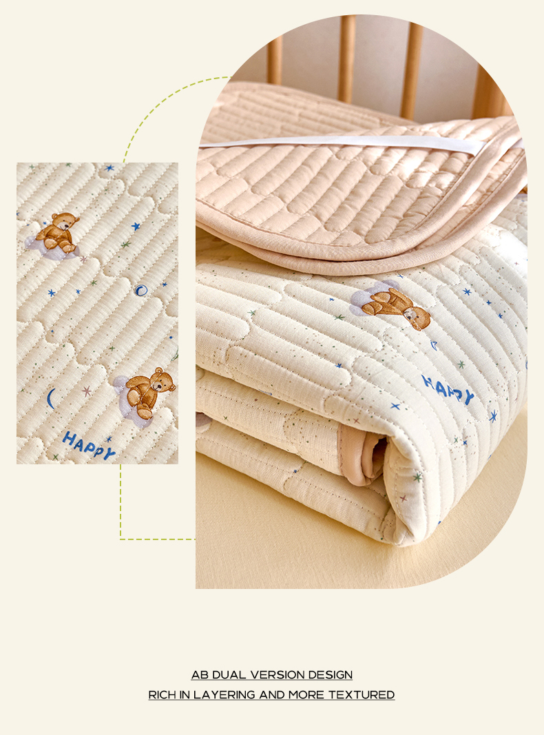• 91家纺网 家纺一手货源 找家纺 X猫先生 2025新款全棉双层纱婴幼儿童床盖夹棉床单睡垫薄床垫子母婴级 晚安小熊