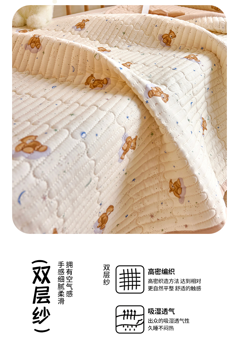 当前位置: 91家纺网 > 商品网购 > 床上用品 > 床盖 > X猫先生 2025新款全棉双层纱婴幼儿童床盖夹棉床单睡垫薄床垫子母婴级 晚安小熊