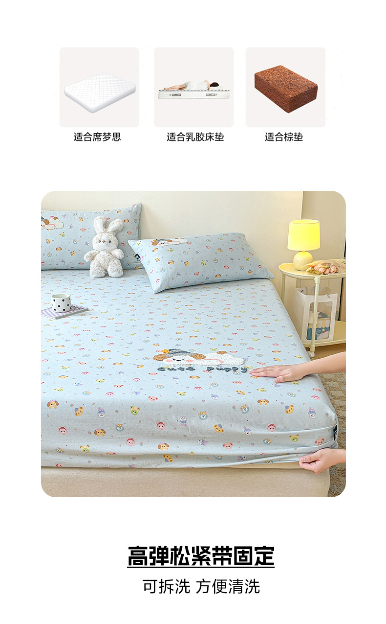 (总)乐美家纺 2025新款A类高克重刺绣牛奶绒床笠三件套,好朋狗,森林乐队,熊熊派对,小熊奶盖,萌宠派对,萝莉猫