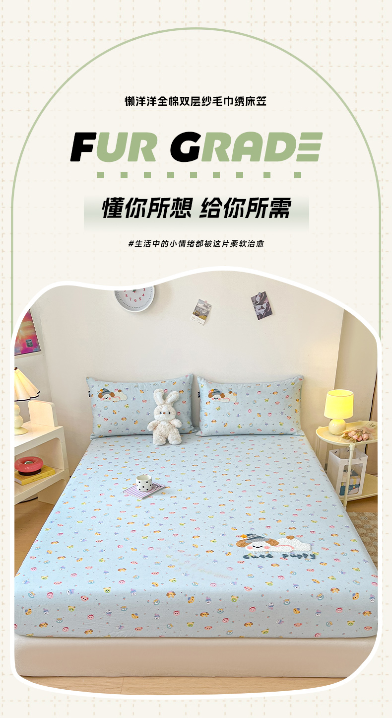 乐美家纺 2025新款懒洋洋全棉双层纱毛巾绣床笠三件套(提供买家秀) 星星狗