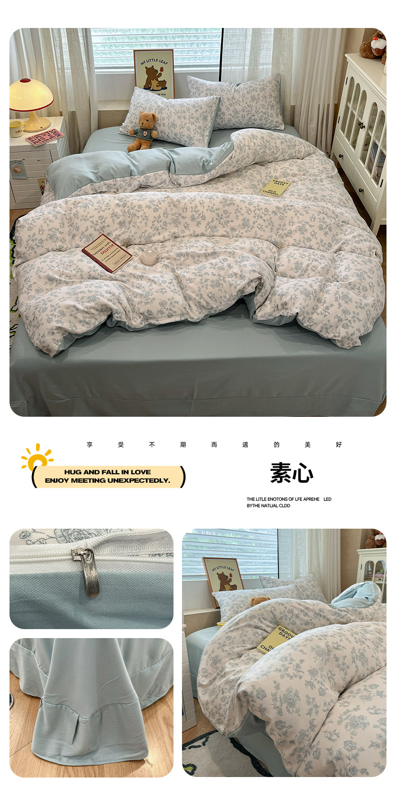 (总)金梦拉家纺 2026春夏韩版花边款小碎花古法水洗仿棉A类砂洗云小棉四件套,薄荷奶绿,海盐奶蓝,梦幻紫,柠檬奶黄,芝士蜜桃,海盐奶咖