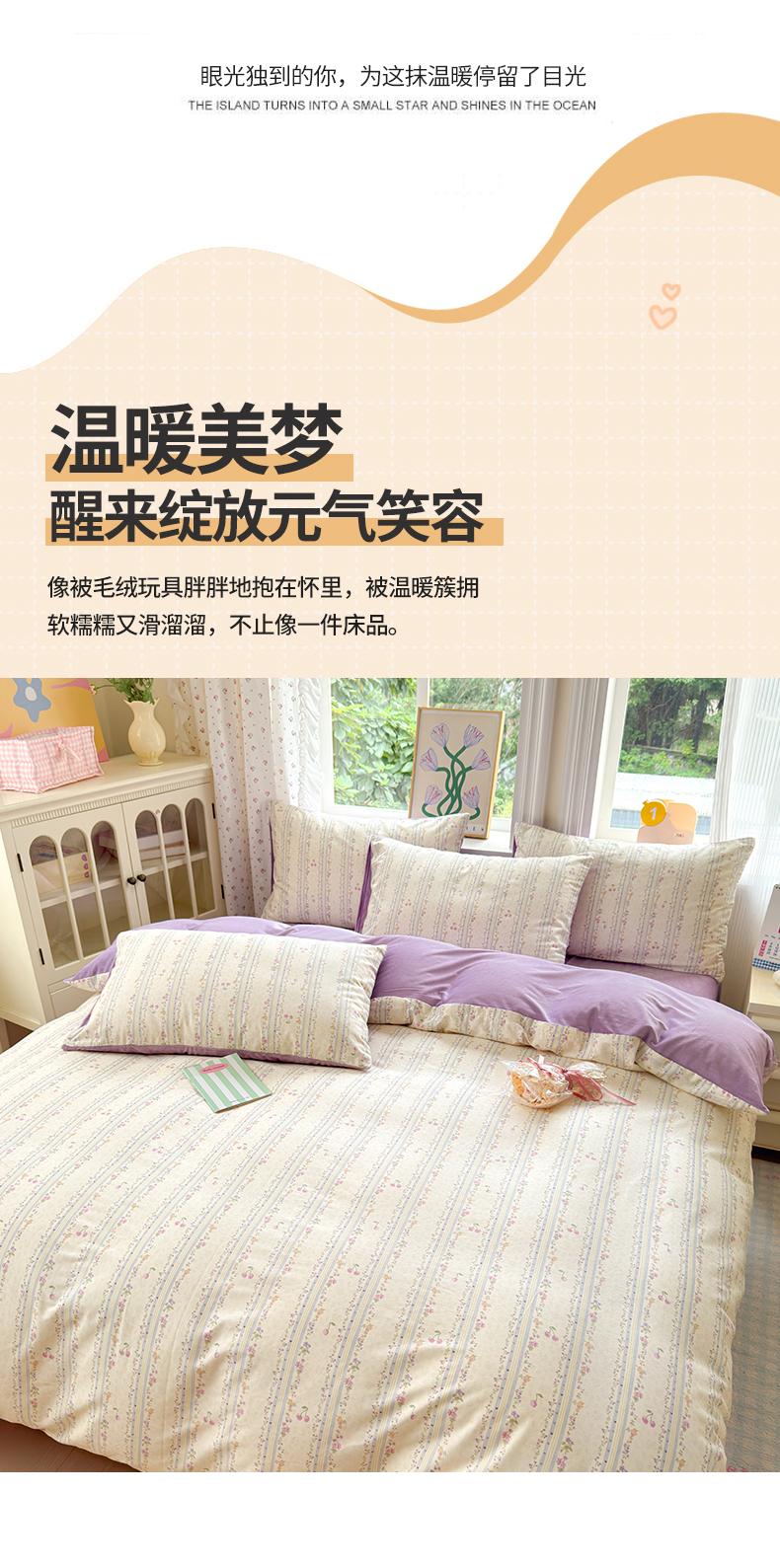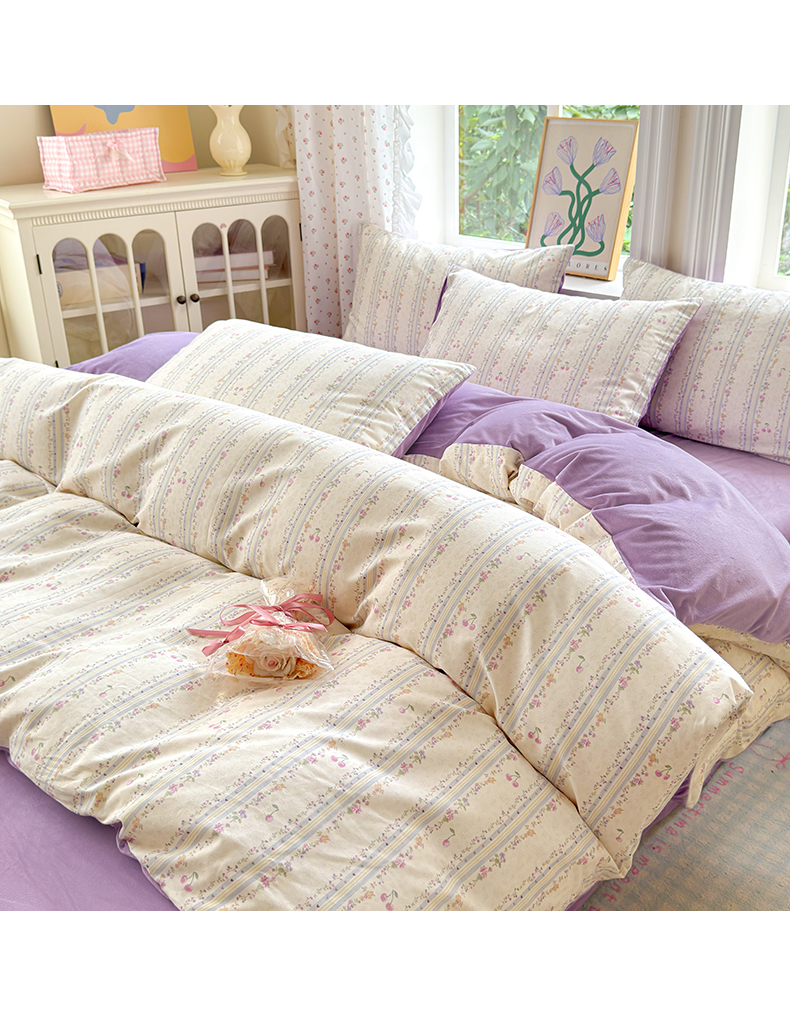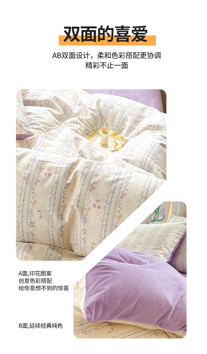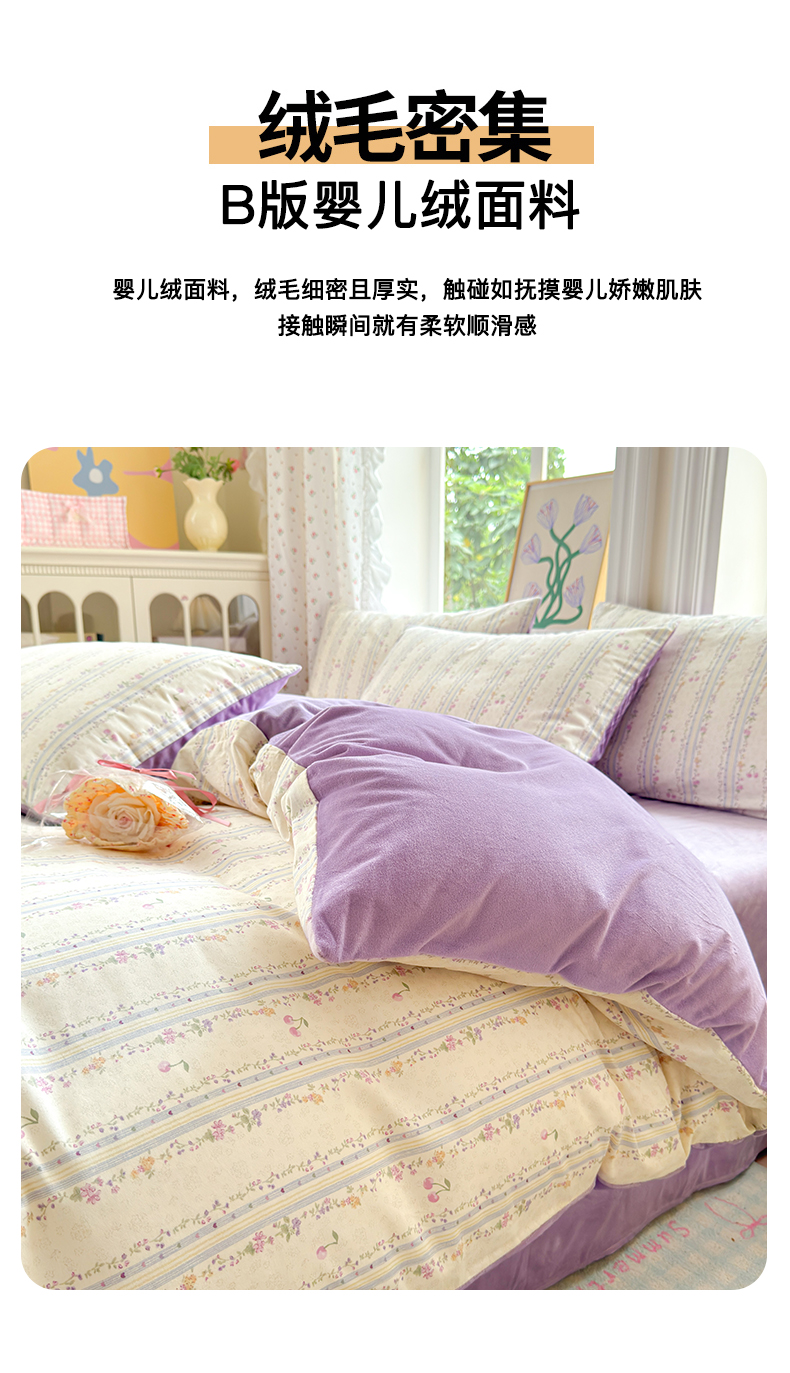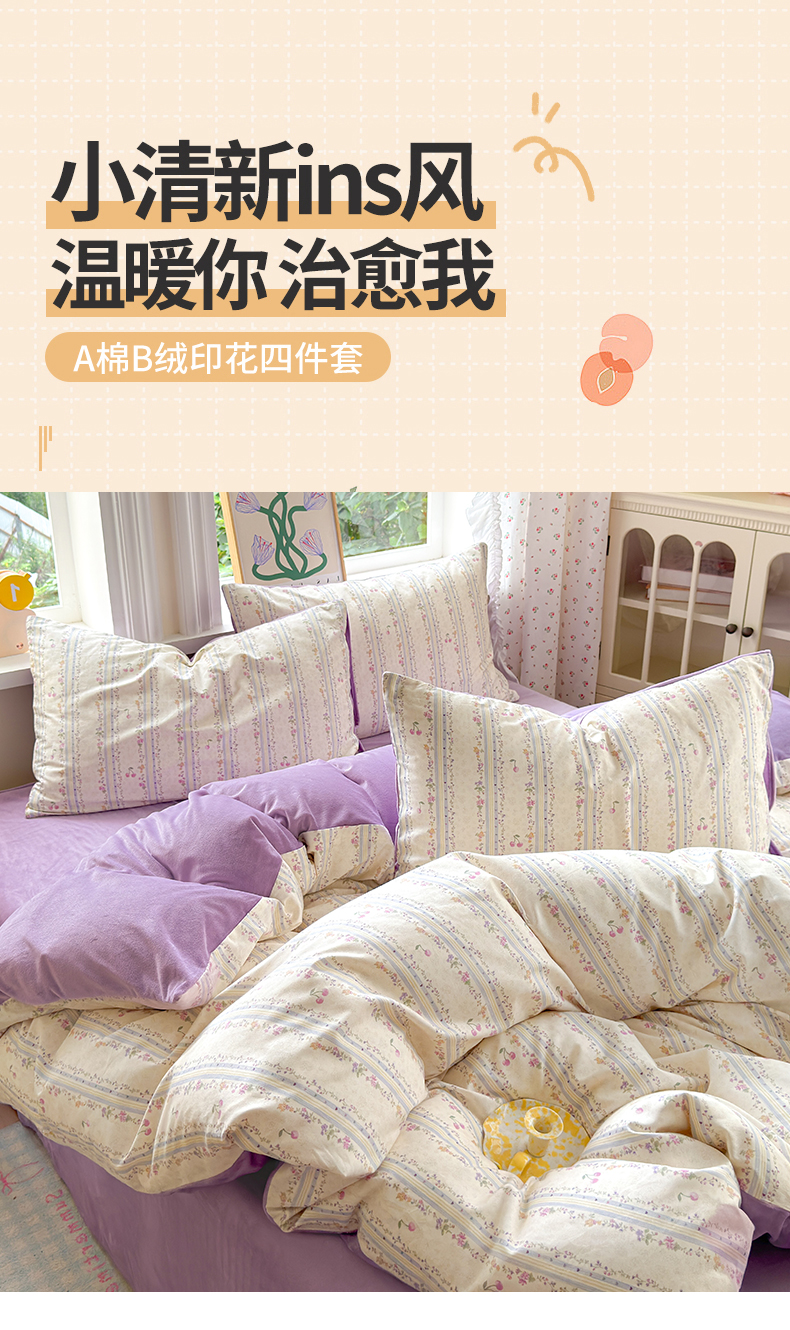 当前位置: 91家纺网 > 商品网购 > 床品套件 > 四件套 > 全棉普通四件套 > 清雅福 2025秋冬新品全棉印花棉加绒四件套系列 棉绒-花季时光