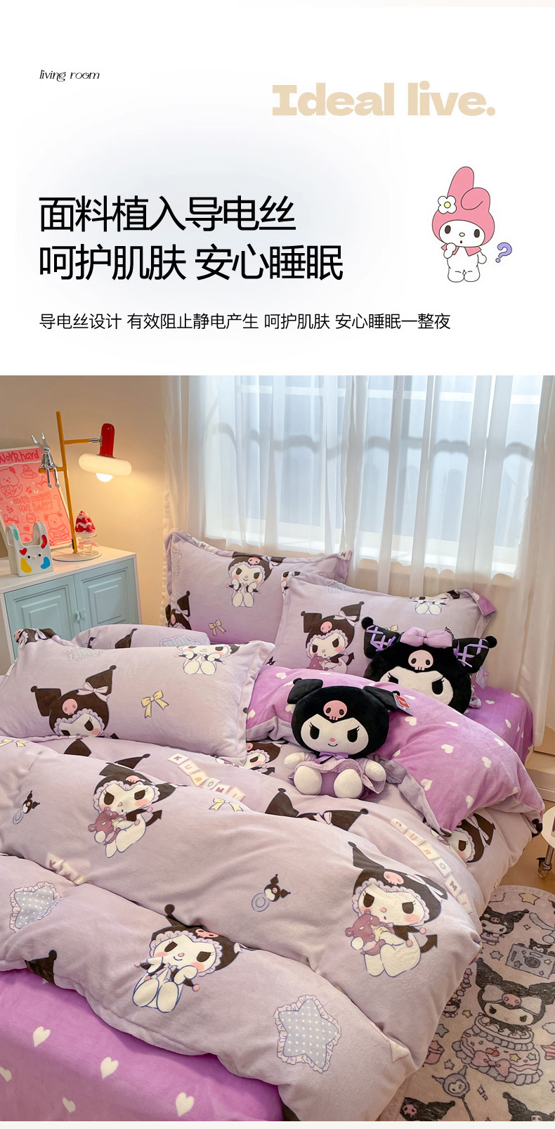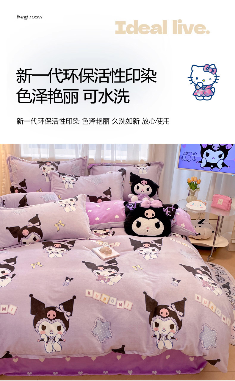 当前位置: 91家纺网 > 商品网购 > 床品套件 > 四件套 > 牛奶绒四件套 > 暮思家居 2025新款三丽鸥正版授权高克重200克加厚保暖卡通牛奶绒四件套 牛奶绒-甜美库洛米