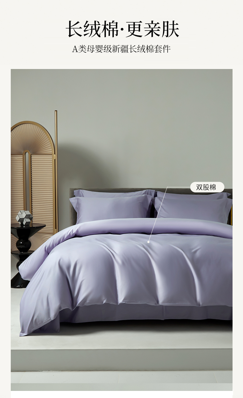 当前位置: 91家纺网 > 商品网购 > 床品套件 > 四件套 > 长绒棉四件套 > 柔觉家纺 2025新款100支长绒棉A类纯色双拼素色全棉四件套 奶油紫