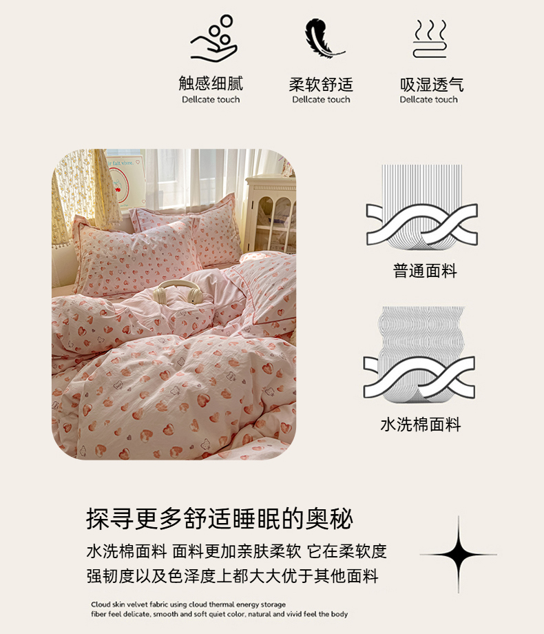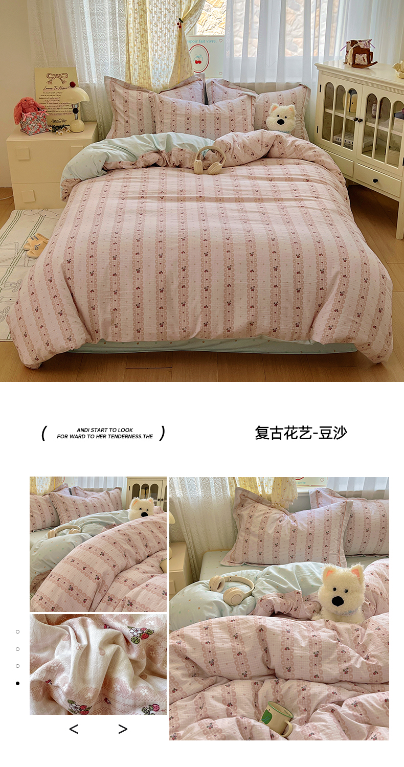 当前位置: 91家纺网 > 商品网购 > 床品套件 > 四件套 > 水洗棉四件套 > 亨通家纺 2025新款爆款韩国小布袋古法水洗棉云感棉四件套【提供买家秀】 依恋-粉