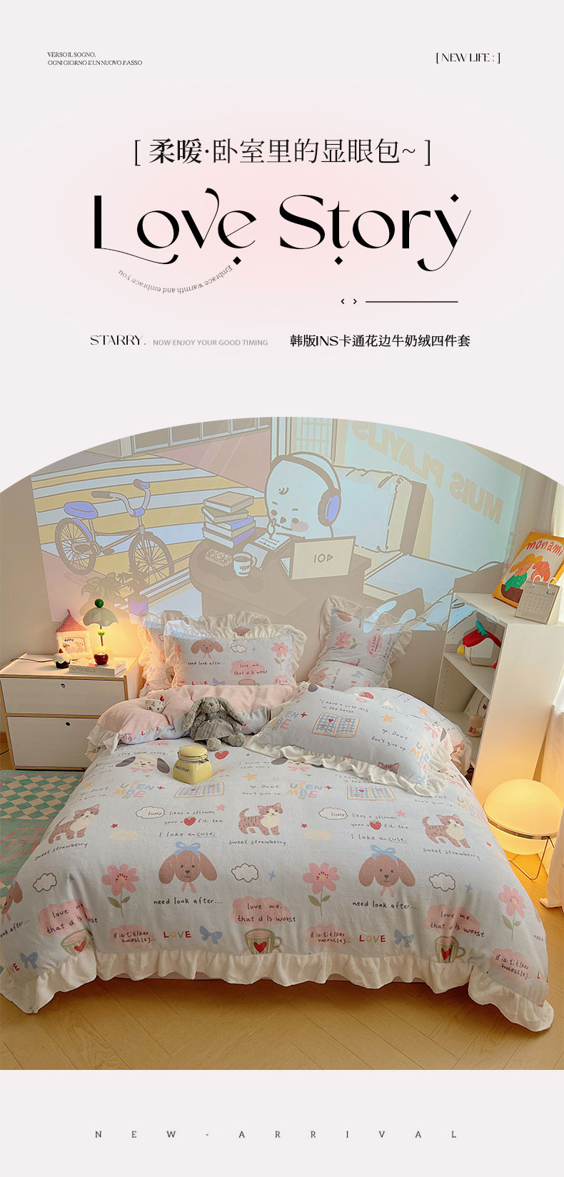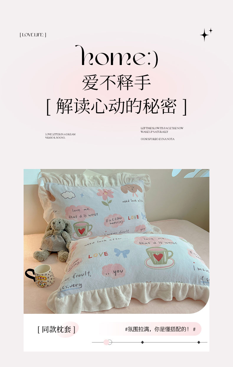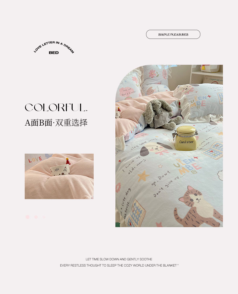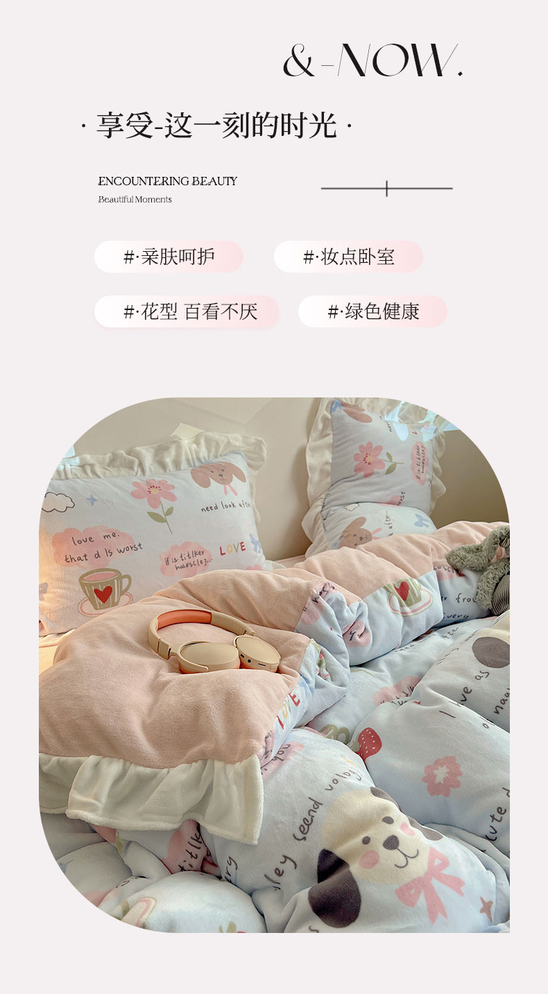 当前位置: 91家纺网 > 商品网购 > 床品套件 > 四件套 > 牛奶绒四件套 > 六巷胡同 2025新款韩式博主风花边款INS卡通A类牛奶绒四件套(第一系) 花边猫狗小课堂