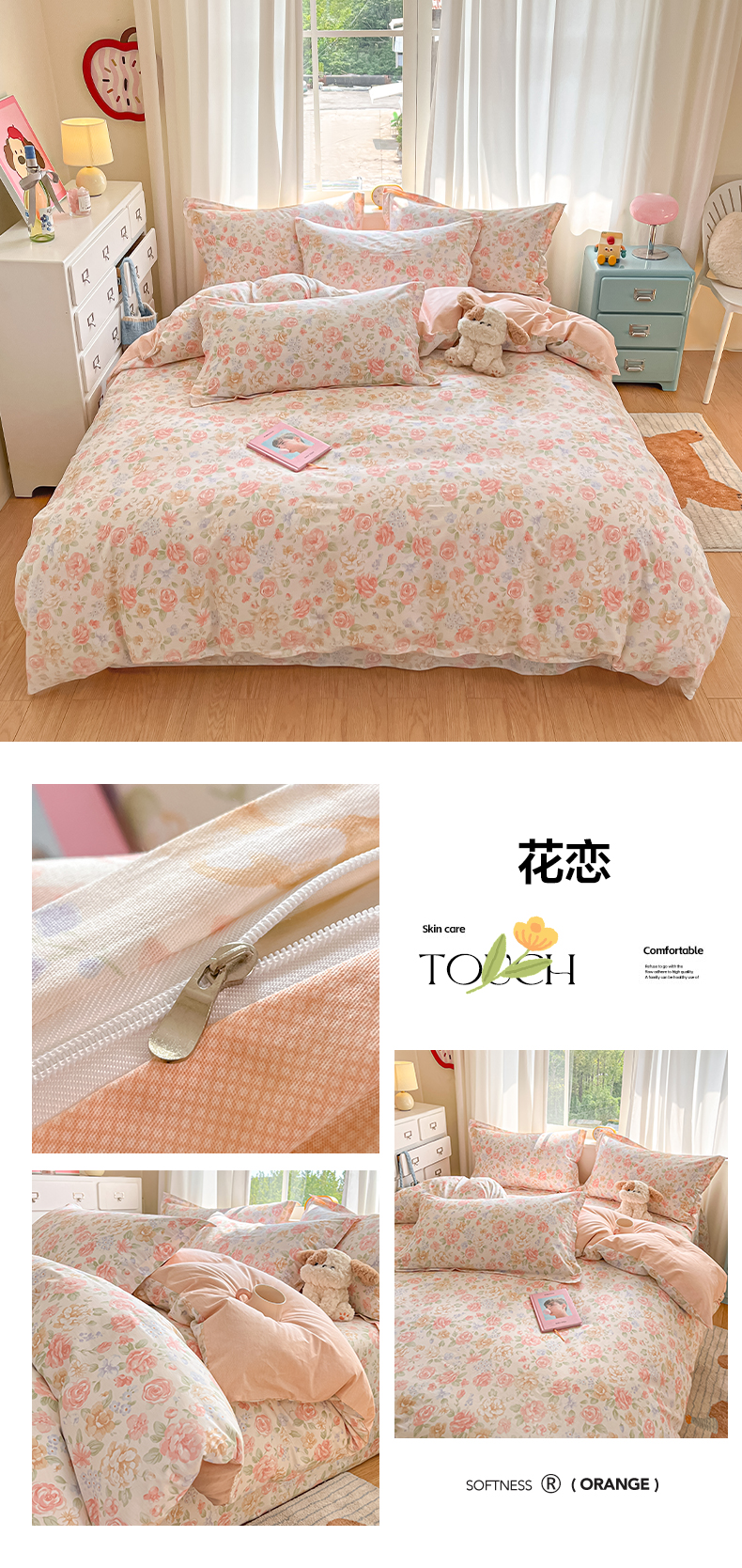 花梦欣 2025新款全棉印花单品系列-四件套花恋,花恋