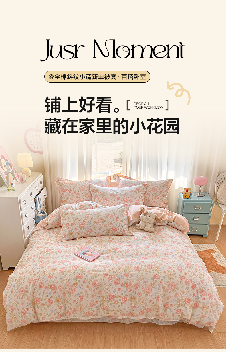 商品名称:花梦欣 2025新款全棉印花单品系列-单被套花恋