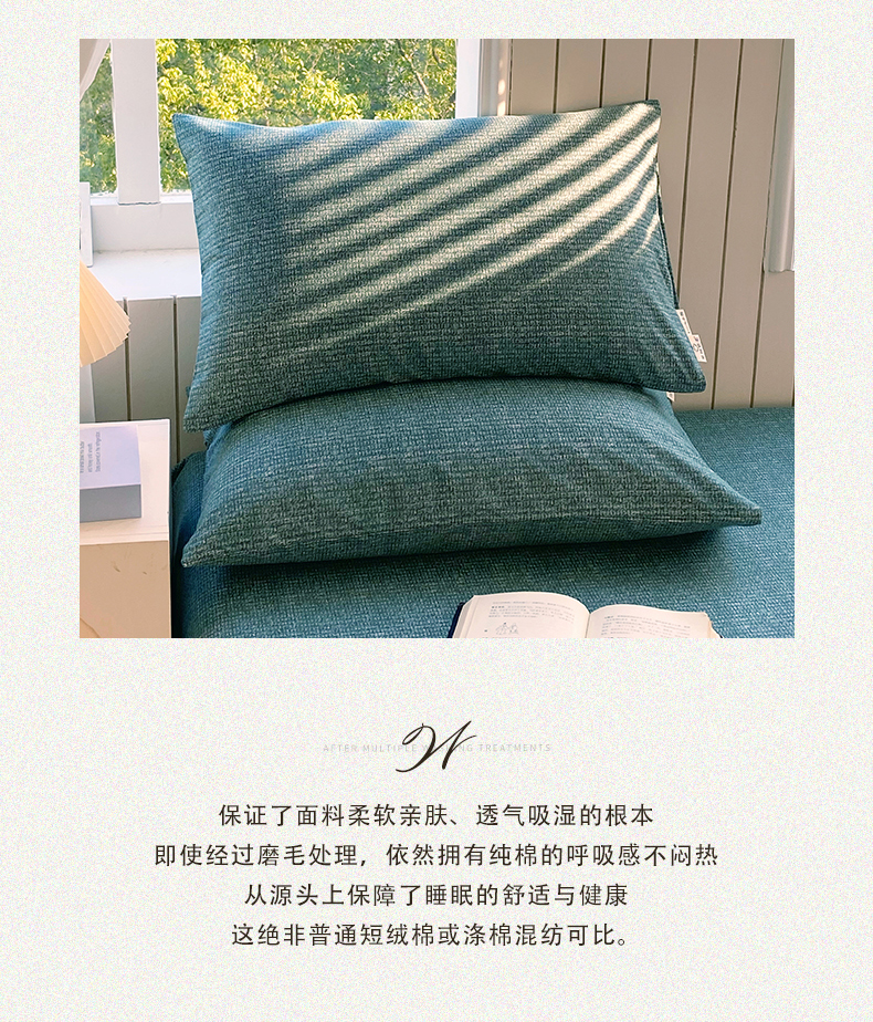 春皖家纺 2025新款原棉磨毛单枕套 枕套单件-风格一 简森绿