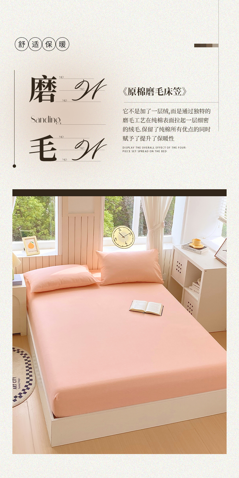 商品名称:春皖家纺 2025新款原棉磨毛单床笠 床笠单件-风格一 丽人粉