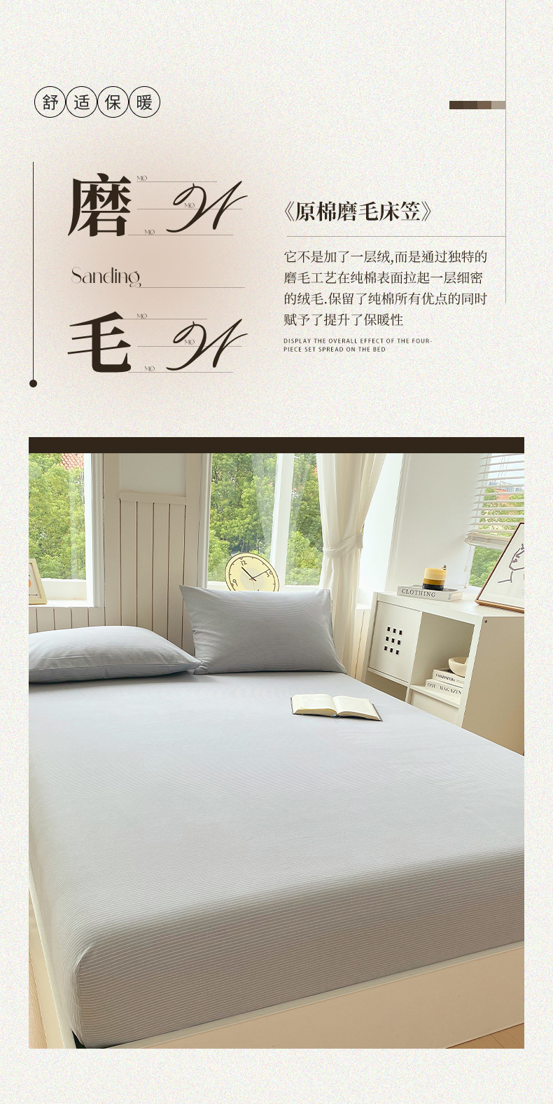 春皖家纺 2025新款原棉磨毛单床笠 床笠单件-风格一 雾灰细语
