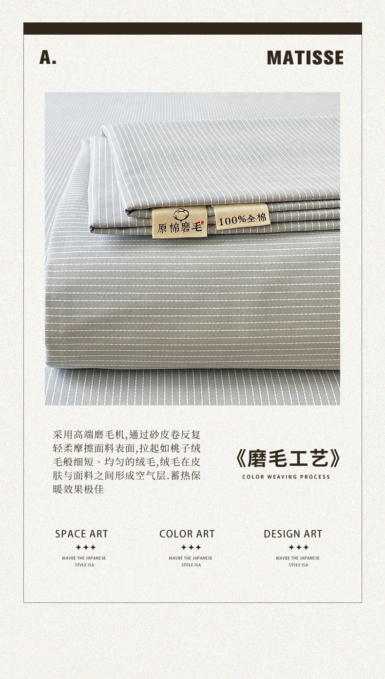 商品名称:春皖家纺 2025新款原棉磨毛单床笠 床笠单件-风格一 雾灰细语