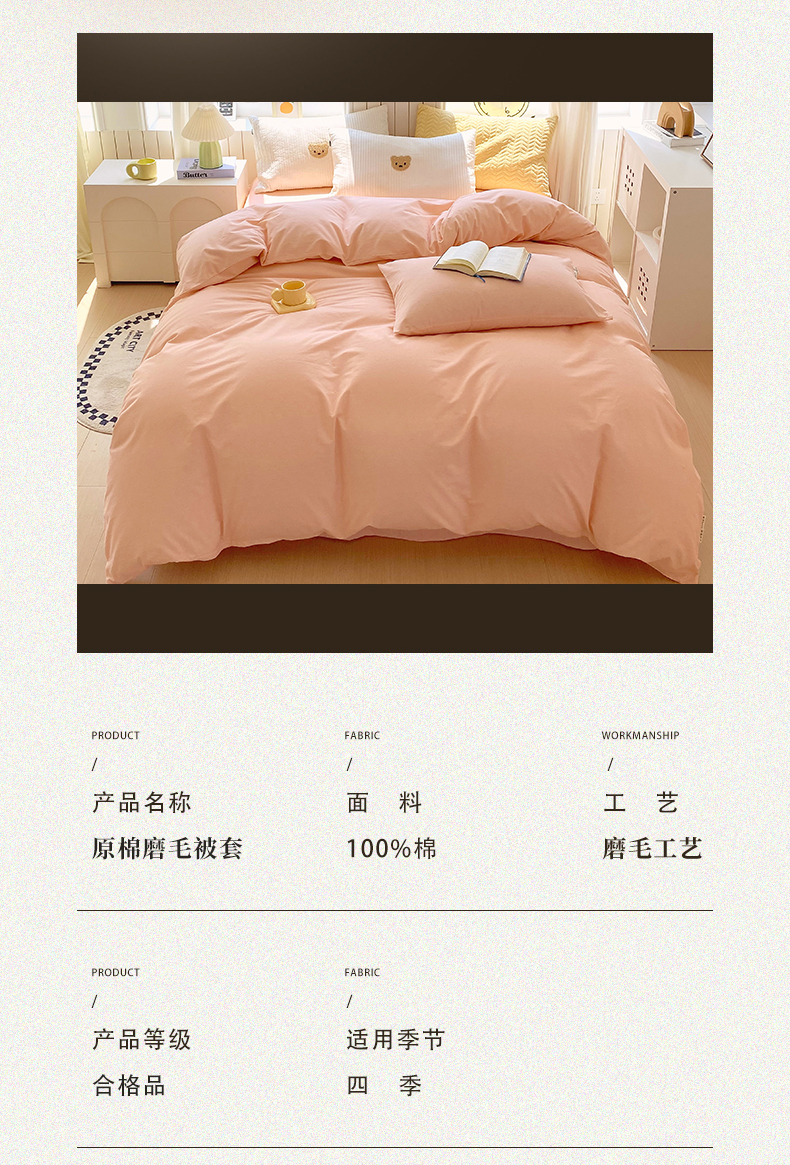 商品名称:春皖家纺 2025新款原棉磨毛单被套 被套单件-风格一 丽人粉