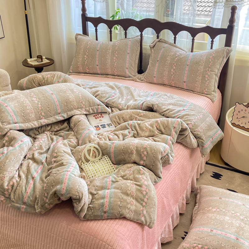 (总)仟网汇 2025新款亲肤舒适双面牛奶绒床盖款四件套,爱心灰,爱心紫,复古小花,黑珍珠,可可奶咖,蔷薇粉,丝绒蛋糕,胭脂,樱桃格趣,枝枝兔,妖姬,紫波点,豆蔻年华,朵缦,赫本,黑糖珍珠,樱桃派,豹纹kt咖
