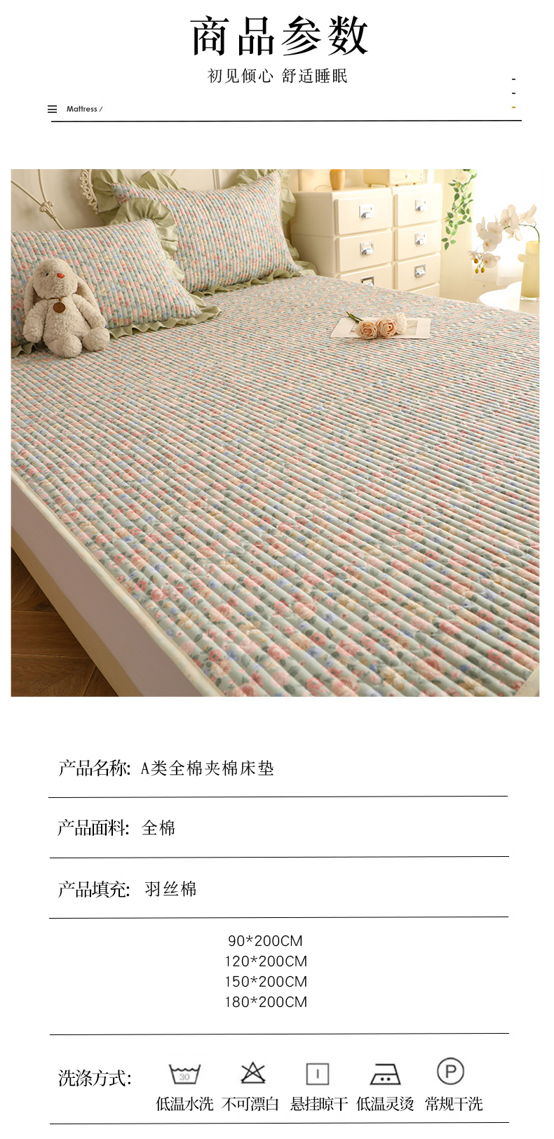 (总)美达家纺 2025新款全棉防滑榻榻米床护垫(可定制),柏林梦境-绿,贝贝南瓜,风之恋,花枝摇曳,加州甜心-粉,暮风寻蝶,奶呼兔兔-米,暖阳绿意,小橙橘