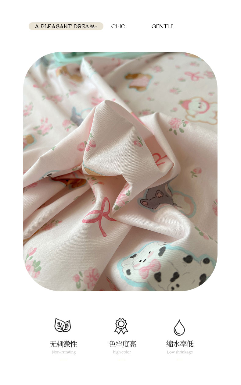 (总)六巷胡同 2025新款 INS减龄可爱风卡通全棉四件套第五系(森林音乐会系列),波点嘟嘟猫,点点面包犬,调皮蔷薇狗,哈喽泡芙猫,蓝格插画犬,森林音乐会