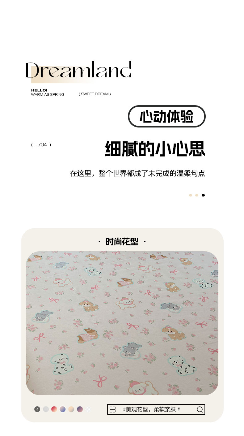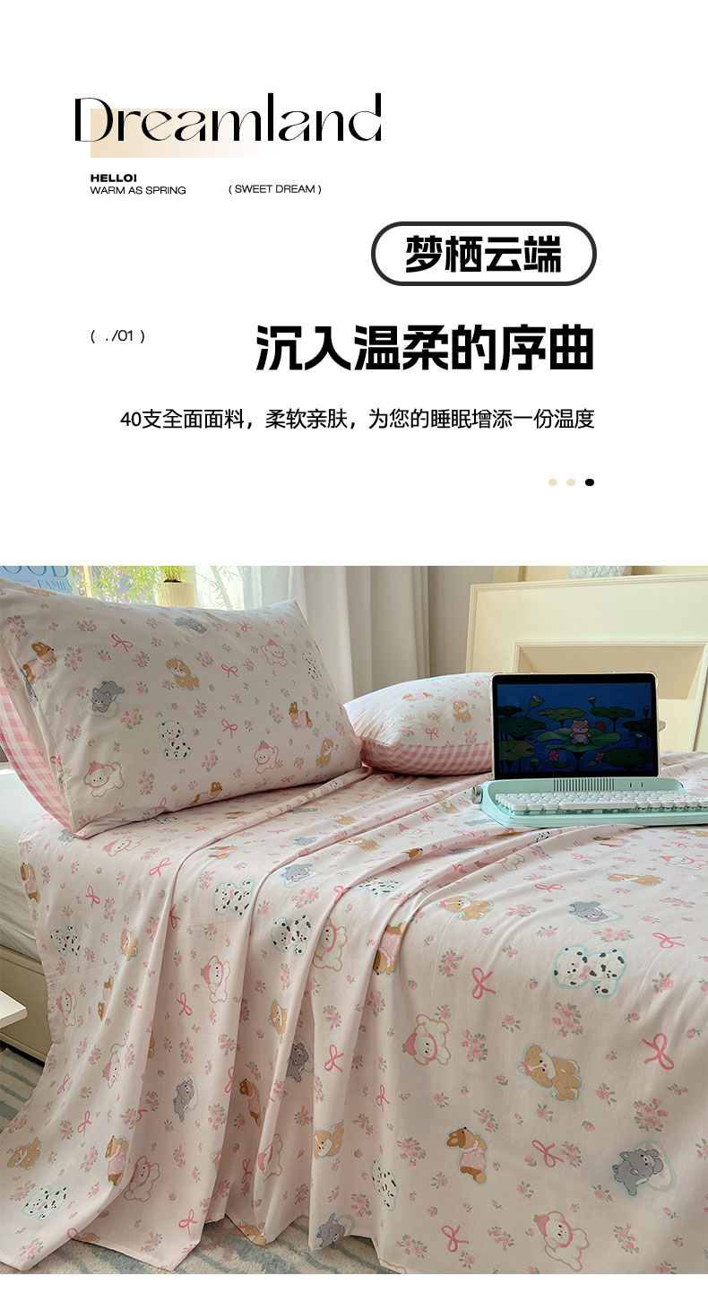 商品名称:六巷胡同 2026新款40支全棉13070卡通单品床单 浪漫碎花犬