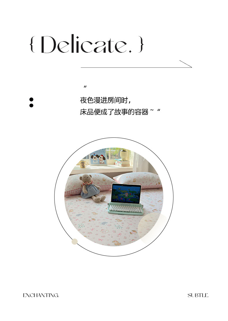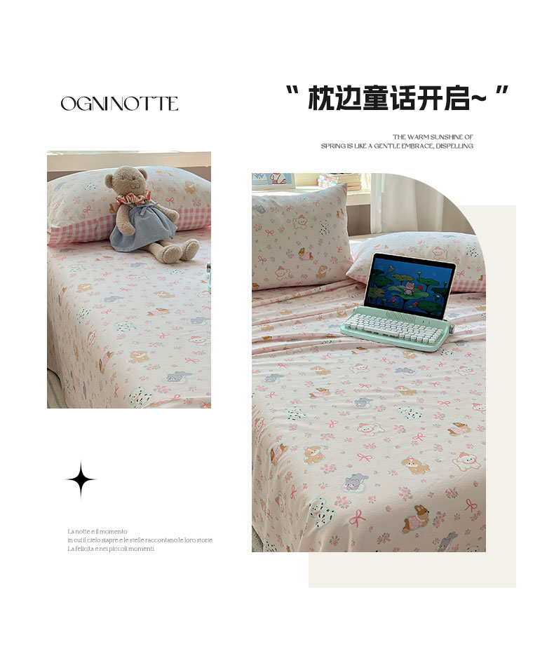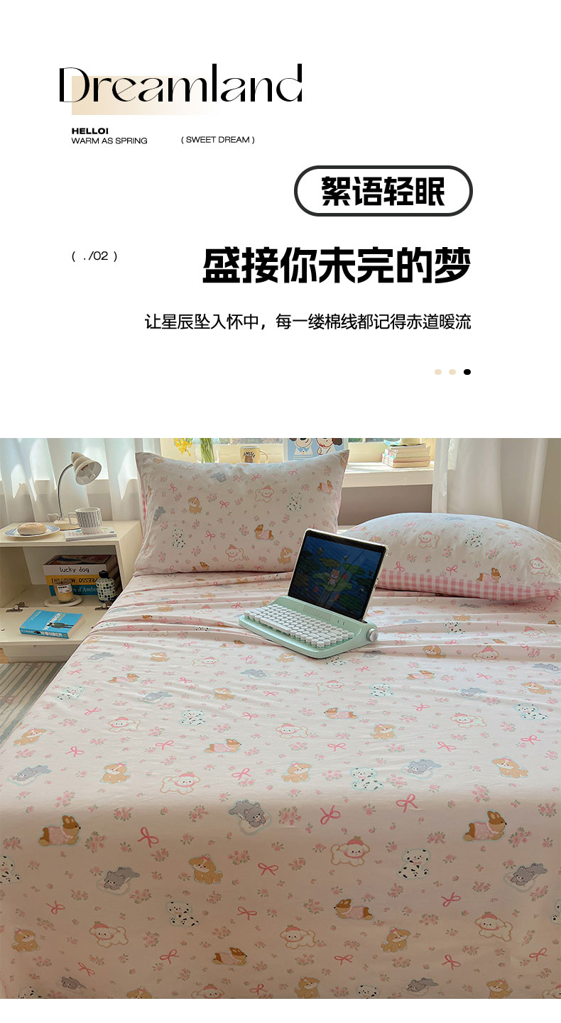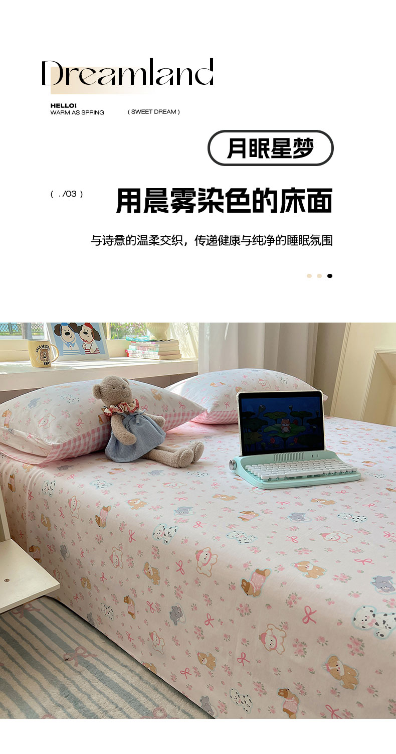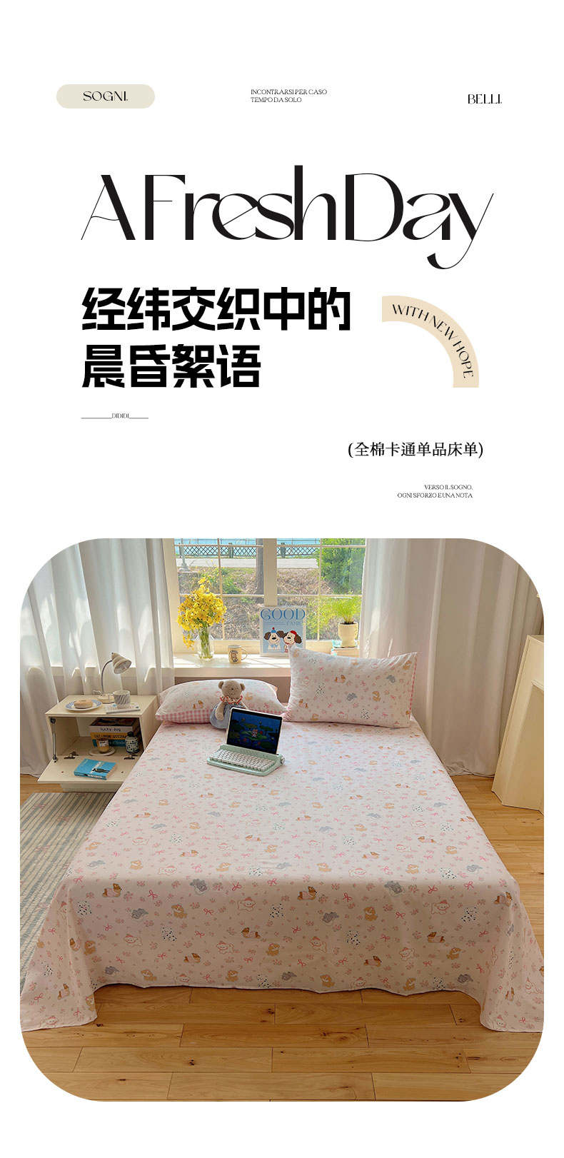 六巷胡同 2026新款40支全棉13070卡通单品床单 浪漫碎花犬