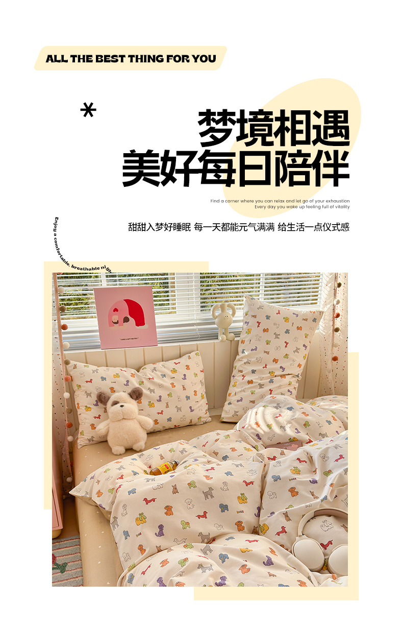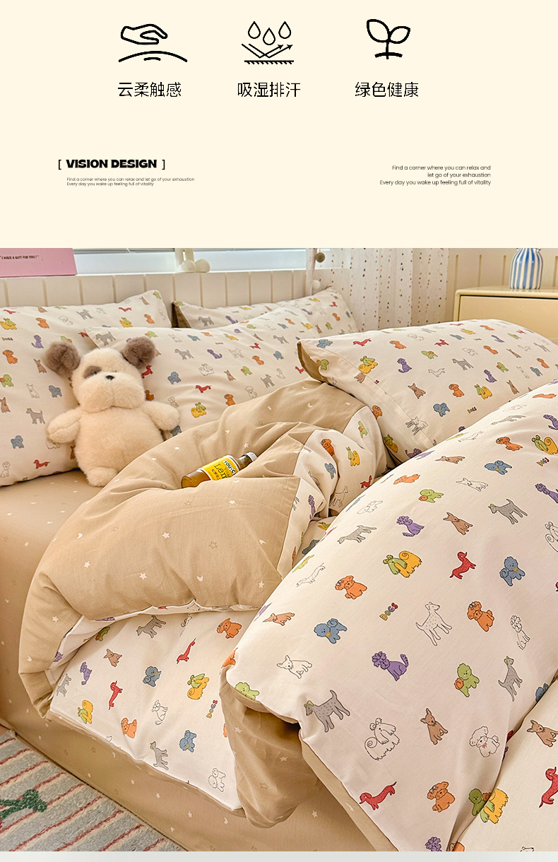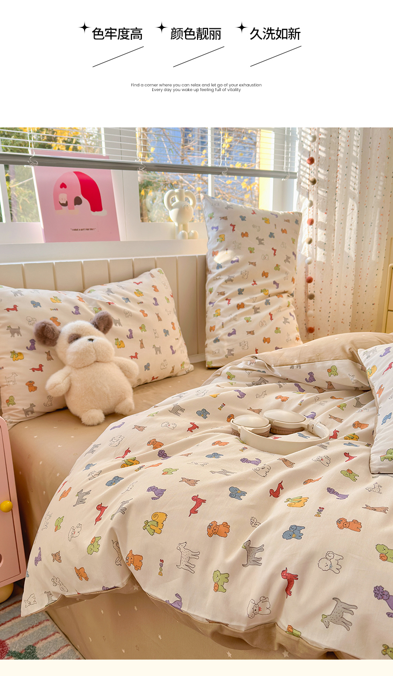 当前位置: 91家纺网 > 商品网购 > 床品套件 > 四件套 > 全棉普通四件套 > 清雅福 2026春夏新款INS小清新40支全棉13372四件套第一批 动物聚会