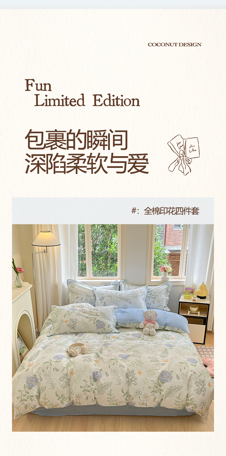 当前位置: 91家纺网 > 商品网购 > 床品套件 > 四件套 > 全棉普通四件套 > 涵宸家纺 2025新款亲肤舒适全棉印花四件套-68系列 总 B花仙子