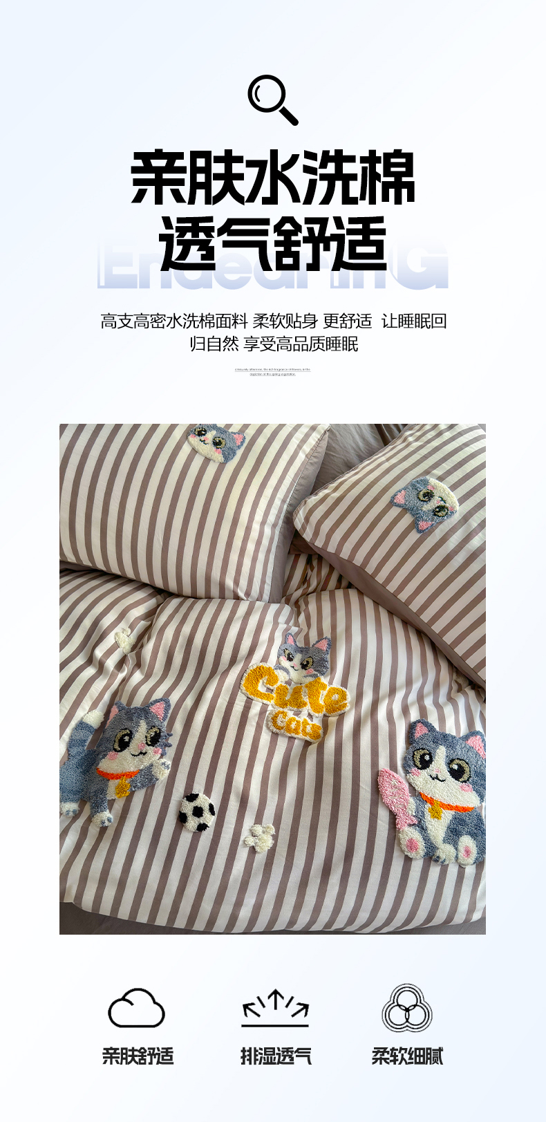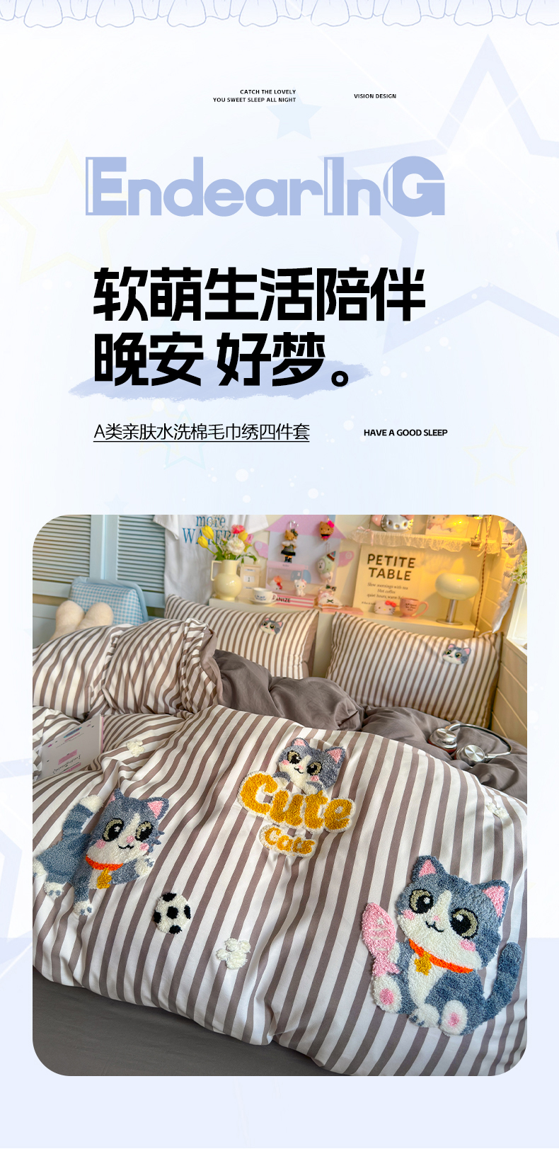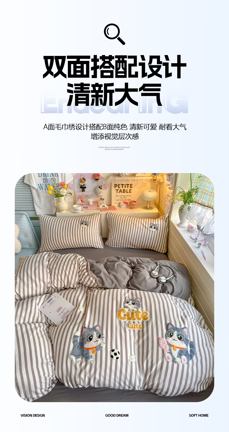 当前位置: 91家纺网 > 商品网购 > 床品套件 > 四件套 > 水洗棉四件套 > 优卡迪家纺馆 2026新款A类亲肤水洗棉毛巾绣系列四件套下载文件包含买家秀 足球猫喵-银灰