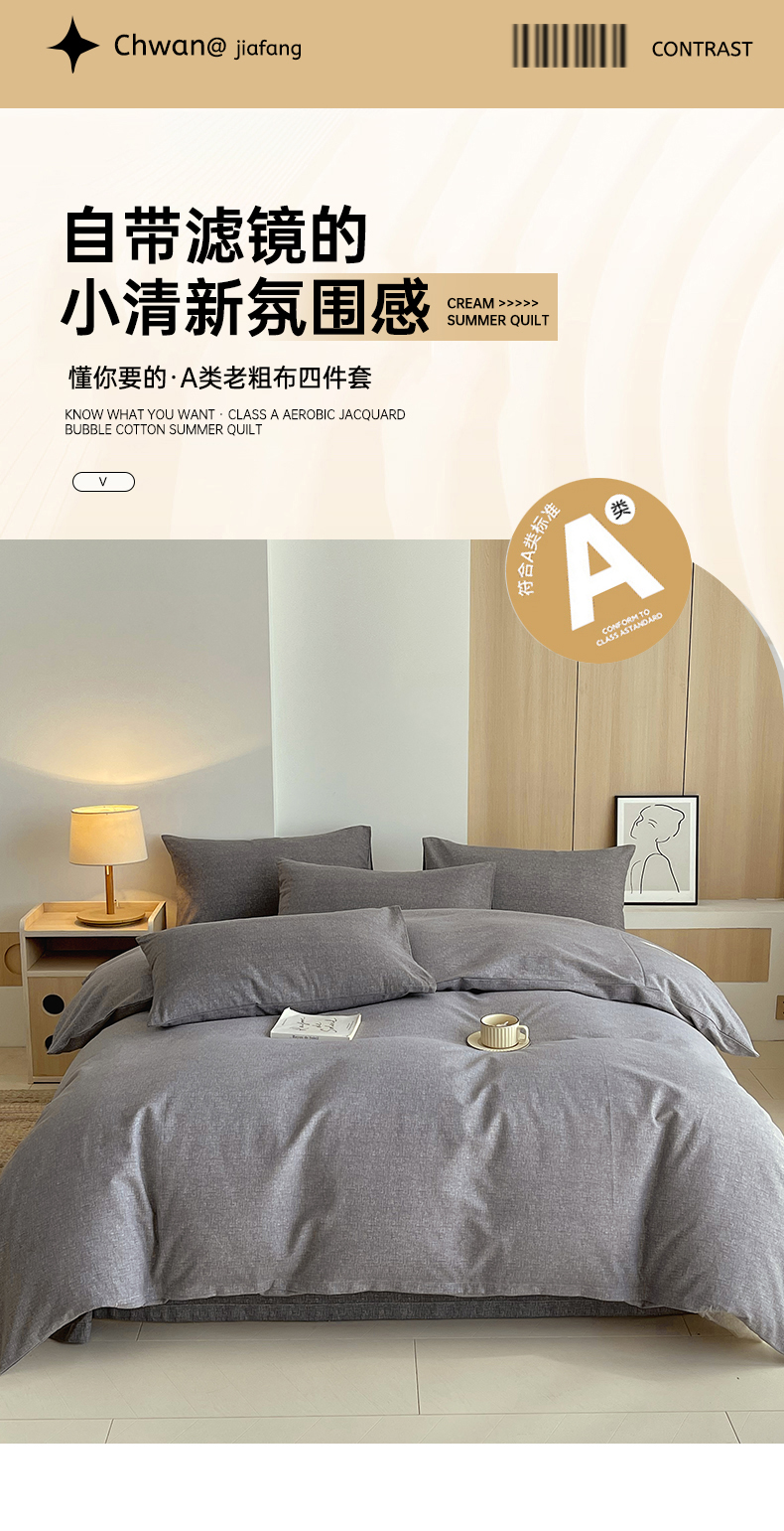商品名称:春皖家纺 2026高端直播热卖非遗A类全棉老粗布加厚床单款三件套-普通款四件套 墨攻