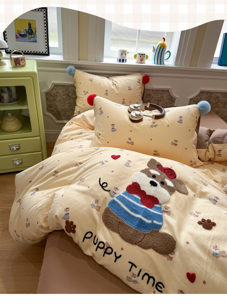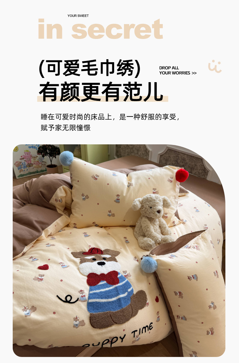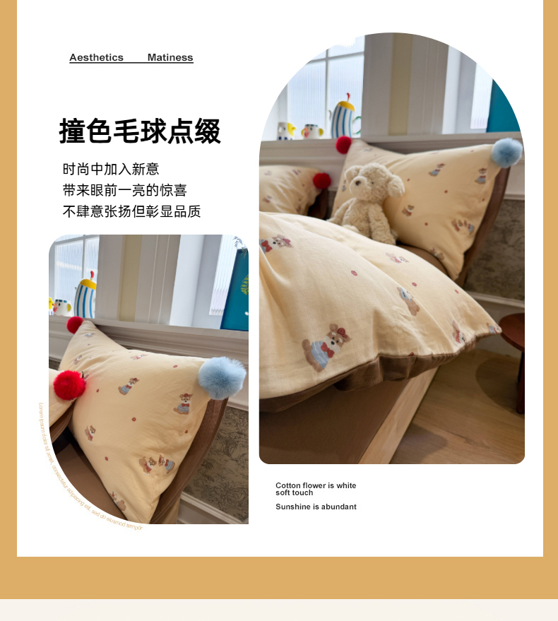 当前位置: 91家纺网 > 商品网购 > 床品套件 > 四件套 > 全棉普通四件套 > 呗旺鹿 2026新款全棉纯棉毛巾绣球球双层纱四件套 双层纱毛巾绣球球魔法星星