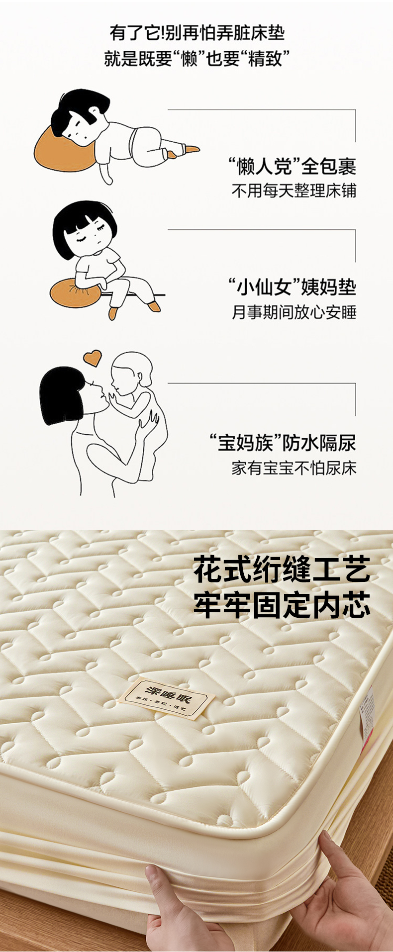 (总)九亭家纺 2026新款A类深睡眠防水夹棉床笠,深睡眠-米白,深睡眠-豆沙,深睡眠-灰色,深睡眠-奶咖,深睡眠-奶昔白,深睡眠-水绿,深睡眠-雾蓝