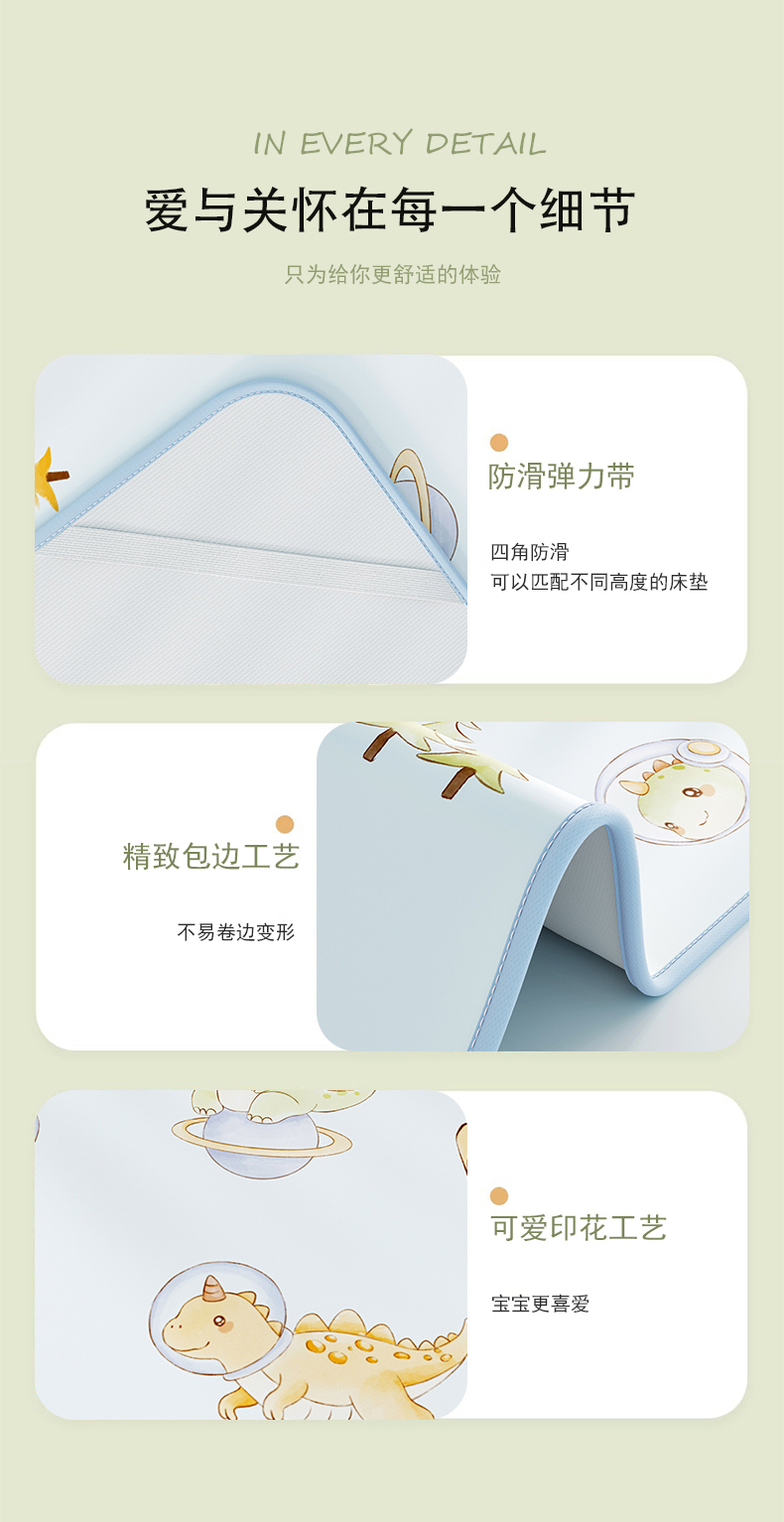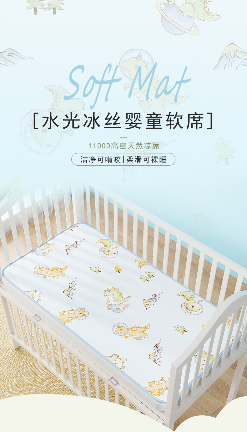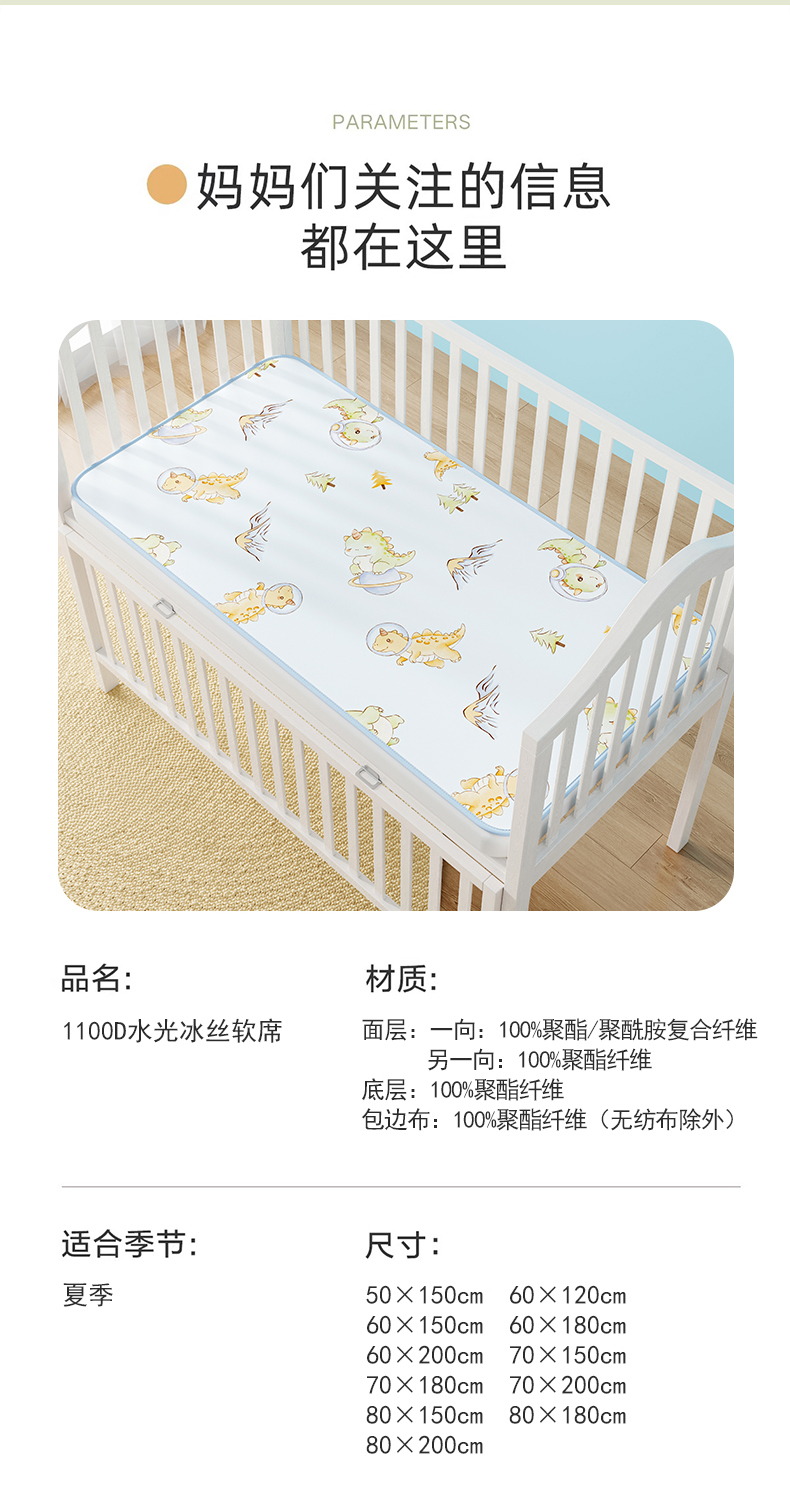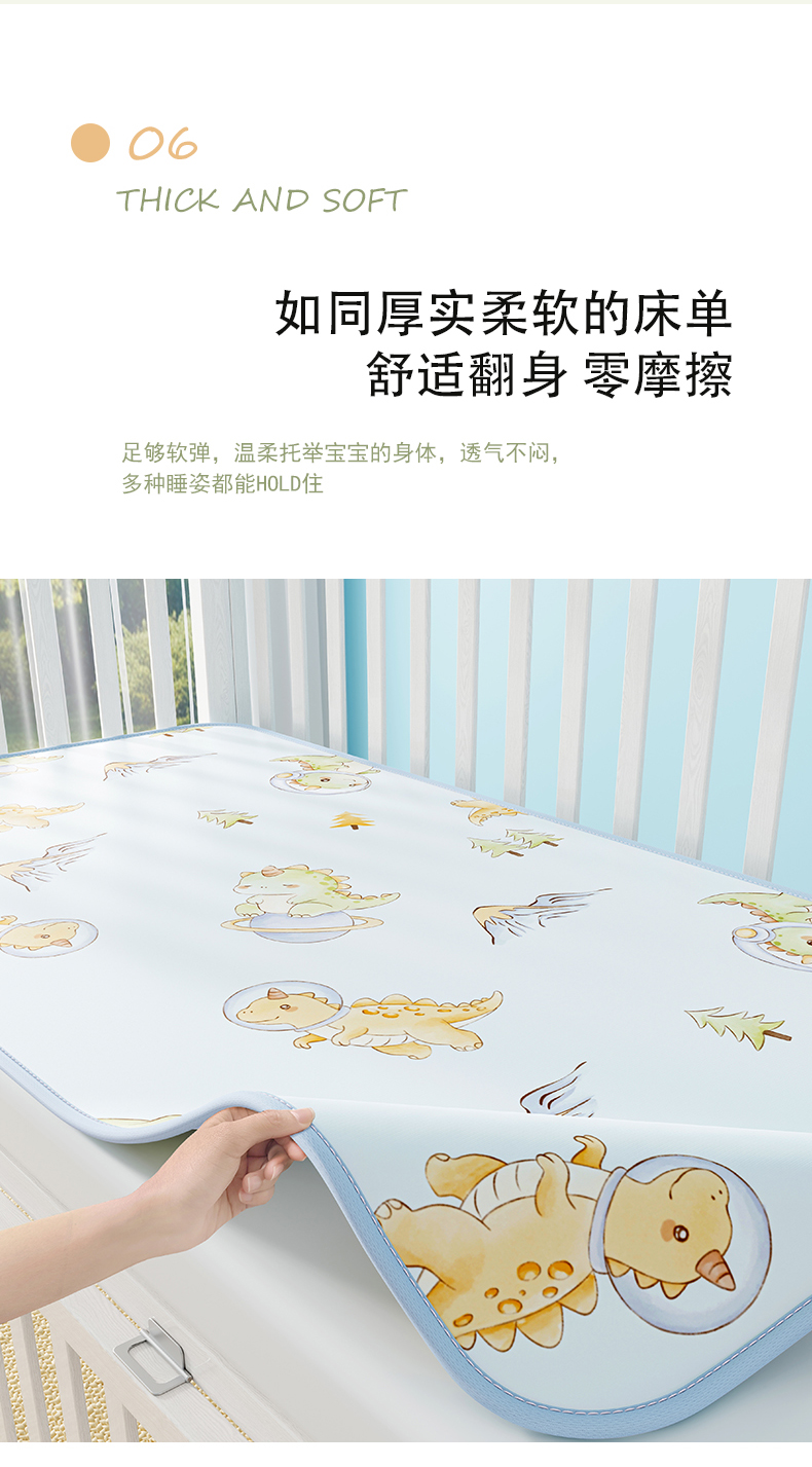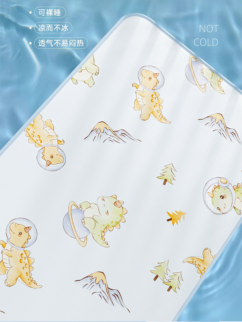 商品名称:奇丝雅 2026新款A类数码印花大版1100D水光冰丝凉席凉席婴儿儿童新生【三明治网底】 呆萌恐龙【三明治网底】