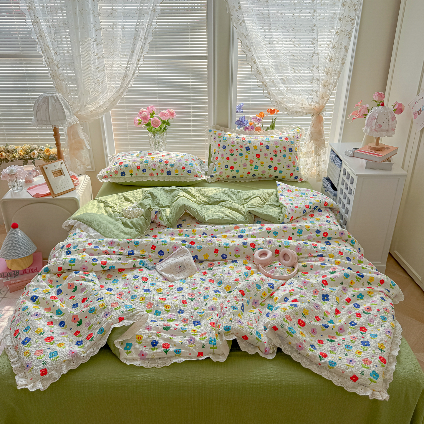商品名称:玉海棠家纺 2026新款泡芙纱全棉纯棉蕾丝花边夏被-花笺系列(软乎乎的质感,治愈所有疲惫) 花笺-浅夏花信